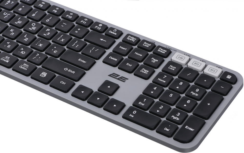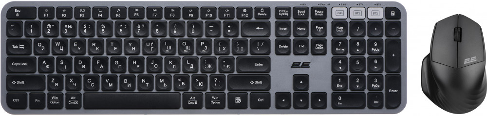 Еще никогда пользование комплектом 2E не было таким удобным: достаточно только один раз подключить ПК/ноутбук или телефон/планшет к комплекту, и можно без труда переключаться между устройствами простым нажатием трех клавиш на клавиатуре или выбирая соответствующий режим на мышке. Мультимедийные клавиши также доступны. Их «назначение» можно изменять с учетом индивидуальных потребностей пользователя. Комбинация Esc+Fn поможет устанавливать по умолчанию нужные клавиши — либо мультимедийные, либо F1-F12. Клавиатура оптимизирована для подключения к устройствам, основанным на разных ОС. Именно это позволяет переключать настройки в соответствии с системами iOS, macOS или Win.
