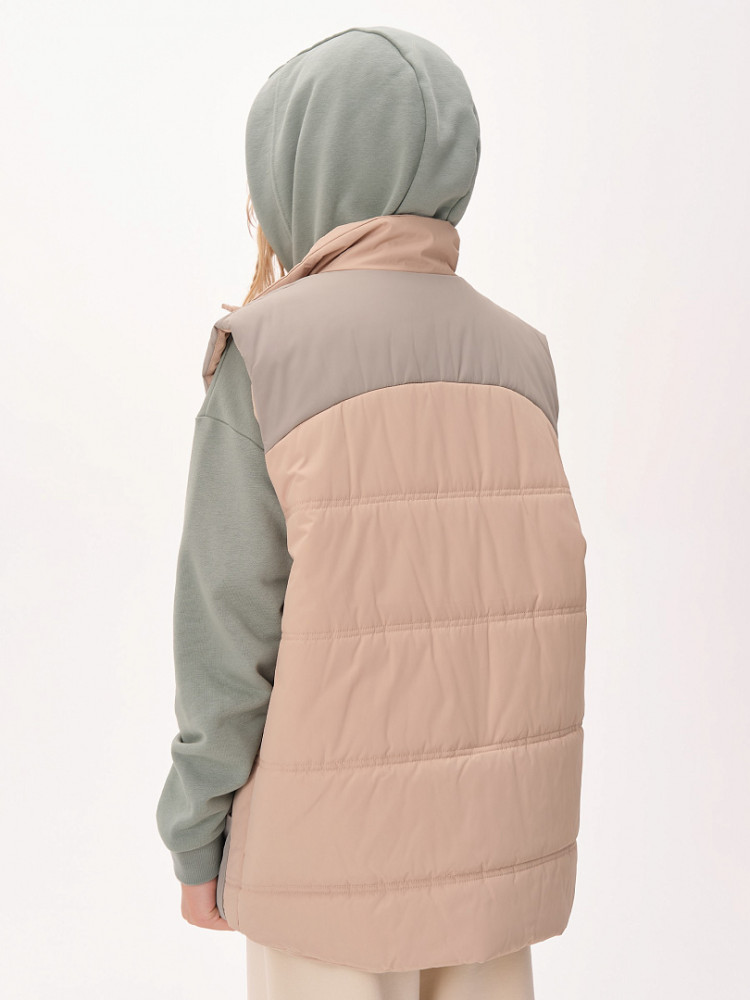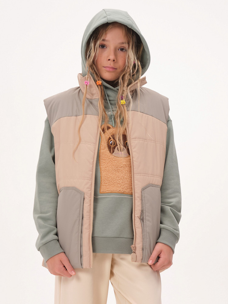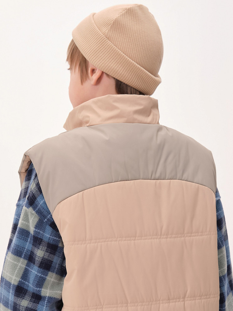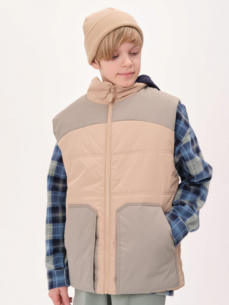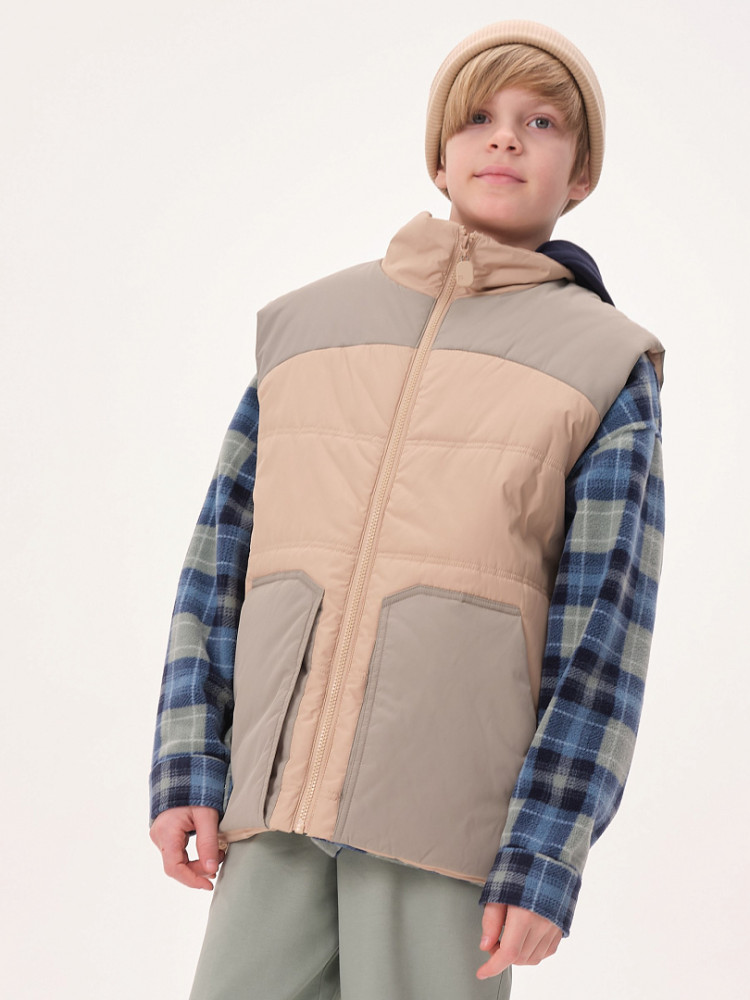 Жилет детский утеплённый — это не только тепло и комфорт, но и стильный образ для вашего ребёнка! Этот жилет подходит как мальчикам, так и девочкам. Он сочетает в себе практичность, удобство и модный дизайн. Жилет станет отличным выбором для активного отдыха на свежем воздухе в любое время года! Благодаря уникальному прямому силуэту и свободному объёму жилет обеспечивает максимальную свободу движений для вашего ребёнка. Дети смогут играть, прыгать и бегать на улице, не чувствуя дискомфорта. Жилет украшен фигурными кокетками на переде и спинке, что придаёт ему особый шарм и оригинальность. Ваш ребёнок будет выглядеть модно и уверенно, а вы сможете легко сочетать жилет с различной одеждой — от футболок до худи. Жилет утеплён синтепоном, который обеспечивает отличное тепло без лишнего веса. Ребёнок будет чувствовать себя комфортно даже в прохладные дни и не замёрзнет во время прогулок. Он имеет глубокие накладные карманы фигурной формы, которые идеально подходят для хранения мелочей. Воротник-стойка из синтепона дополнительно защищает шею от холодного ветра. Пройма и низ жилета укреплены обтачкой на «ребро» для прочности и долговечности. С внутренней стороны по низу жилета предусмотрена регулировка с помощью эластичного шнура. Это позволяет подгонять жилет под фигуру, обеспечивая дополнительную защиту от ветра и идеальную посадку.