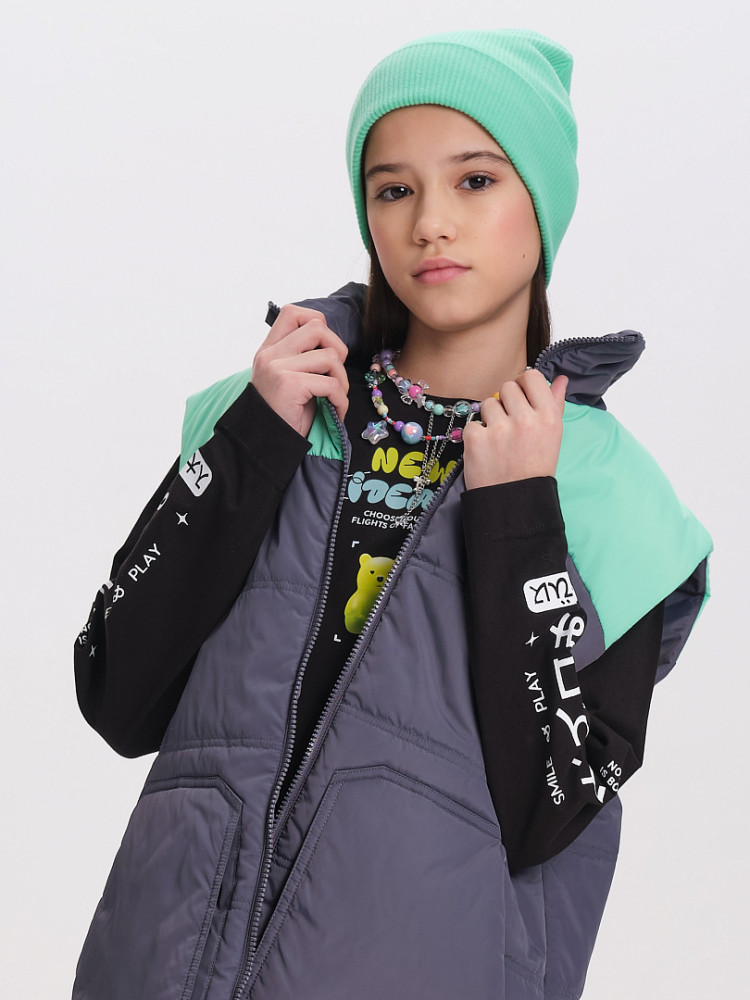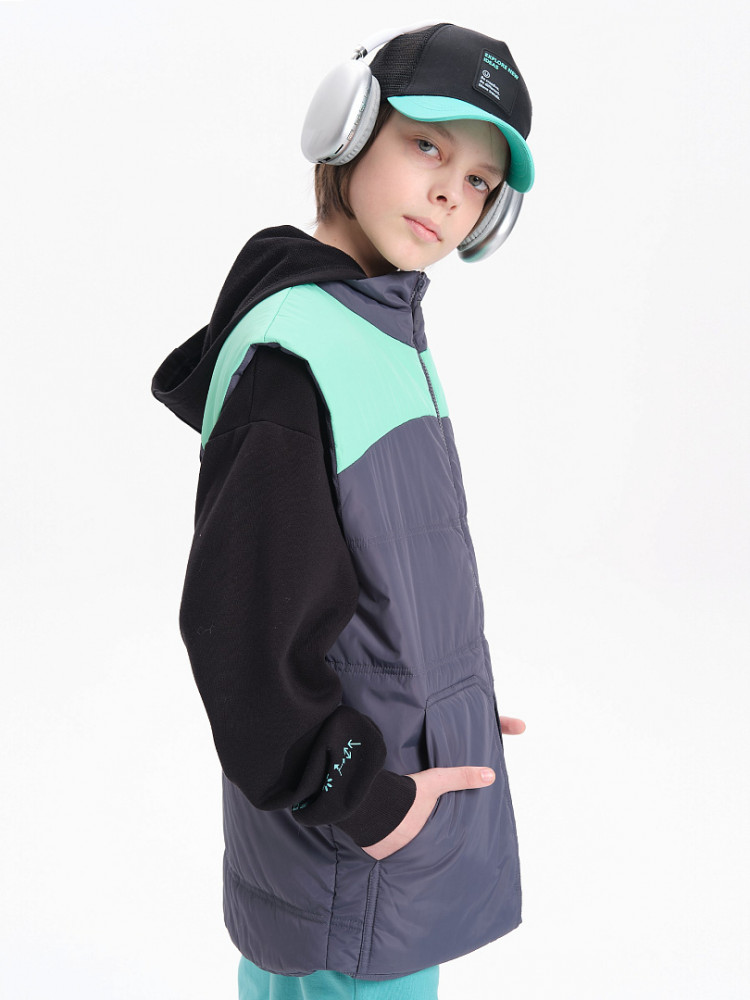 Жилет детский утеплённый — это не только тепло и комфорт, но и стильный образ для вашего ребёнка! Этот жилет подходит как мальчикам, так и девочкам. Он сочетает в себе практичность, удобство и модный дизайн. Жилет станет отличным выбором для активного отдыха на свежем воздухе в любое время года! Благодаря уникальному прямому силуэту и свободному объёму жилет обеспечивает максимальную свободу движений для вашего ребёнка. Дети смогут играть, прыгать и бегать на улице, не чувствуя дискомфорта. Жилет украшен фигурными кокетками на переде и спинке, что придаёт ему особый шарм и оригинальность. Ваш ребёнок будет выглядеть модно и уверенно, а вы сможете легко сочетать жилет с различной одеждой — от футболок до худи. Жилет утеплён синтепоном, который обеспечивает отличное тепло без лишнего веса. Ребёнок будет чувствовать себя комфортно даже в прохладные дни и не замёрзнет во время прогулок. Он имеет глубокие накладные карманы фигурной формы, которые идеально подходят для хранения мелочей. Воротник-стойка из синтепона дополнительно защищает шею от холодного ветра. Пройма и низ жилета укреплены обтачкой на «ребро» для прочности и долговечности. С внутренней стороны по низу жилета предусмотрена регулировка с помощью эластичного шнура. Это позволяет подгонять жилет под фигуру, обеспечивая дополнительную защиту от ветра и идеальную посадку.