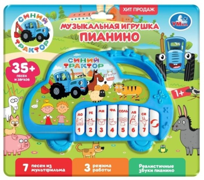 💳 Оплатить за товар можно при получении 🇰🇿 Есть бесплатная доставка по Казахстану от 1 дня 🎁 Копите бонусы с каждой покупки Серия: Синий трактор Музыкальное пианино из серии «Синий трактор» ТМ «УМка» непременно понравится маленькому поклоннику мультсериала про весёлый трактор и будет способствовать развитию его творческих способностей. Ребёнок с удовольствием будет нажимать на клавиши пианино и слушать весёлые песенки из любимого мультфильма. Кроме того, с этой игрушкой можно играть и как с пианино. Благодаря ручке пианино удобно носить с собой. Игра с электропианино ТМ «УМка» развивает: слуховые навыки, музыкальный слух, координацию движений, визуальное восприятие и мелкую моторику. |