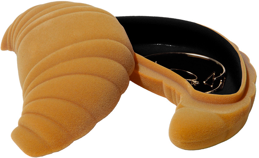 Шкатулка создаст в вашем интерьере красочную атмосферу и поднимет настроение. Выполненная из бархата в виде круасана, она обязательно привлечет внимание и идеально подойдет для хранения украшений или других мелких предметов.