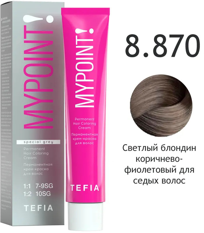 Tefia Крем-краска для волос перманентная «Special Grey», оттенок 8.870 Светлый блондин коричнево-фиолетовый для седых волос