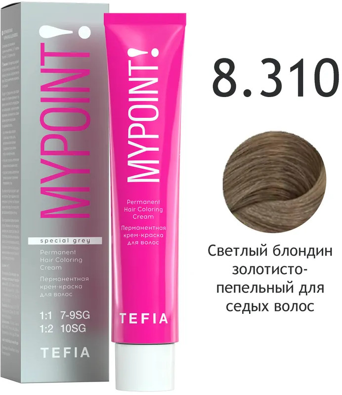 Tefia Крем-краска для волос перманентная «Special Grey», оттенок 8.310 Светлый блондин золотисто-пепельный для седых волос