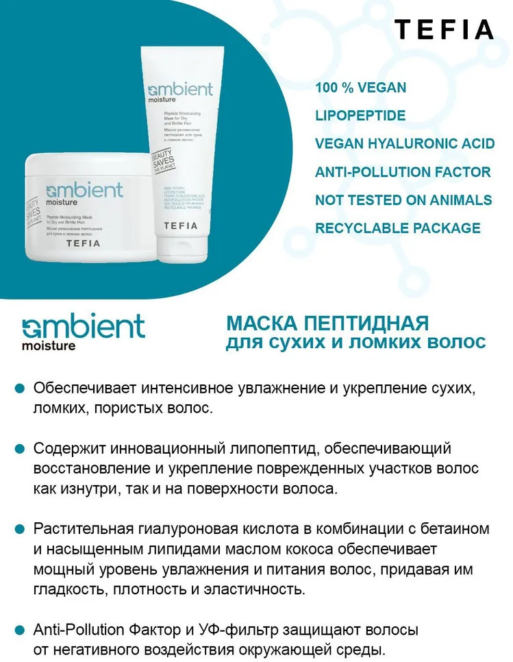 Tefia Маска-увлажнение для сухих и ломких волос пептидная «Peptide Moisturizing Mask for Dry and Brittle Hair»