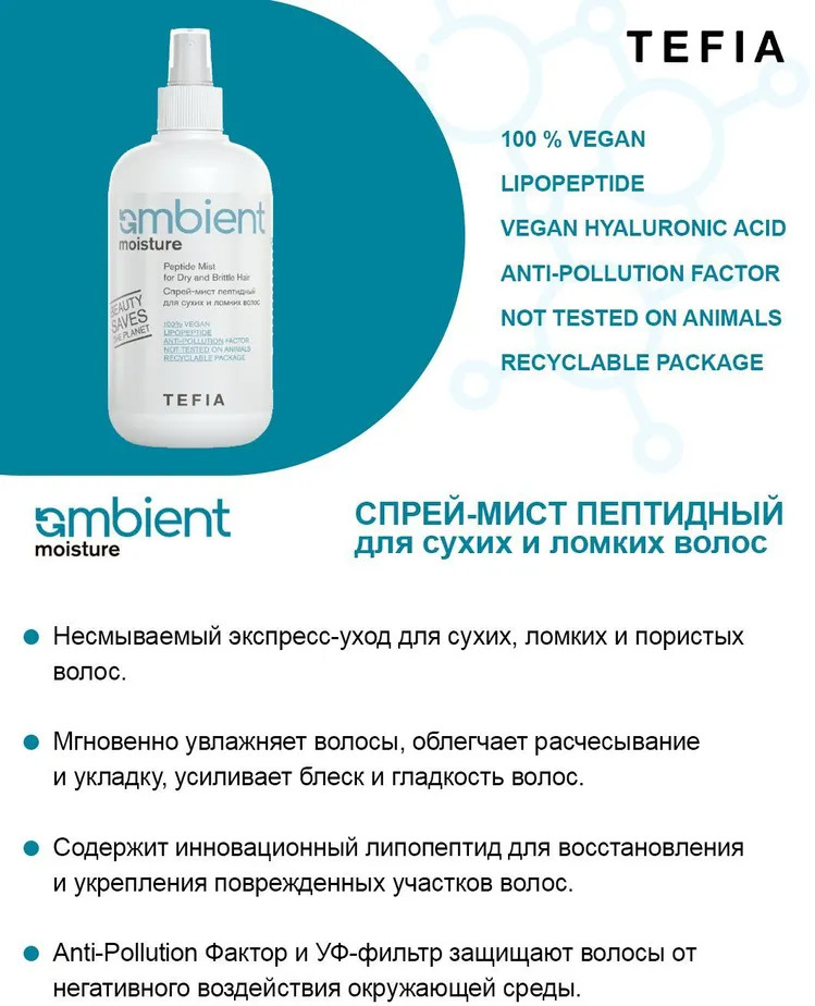 Tefia Спрей-мист для сухих и ломких волос пептидный «Peptide Mist for Dry and Brittle Hair»-30% +39
