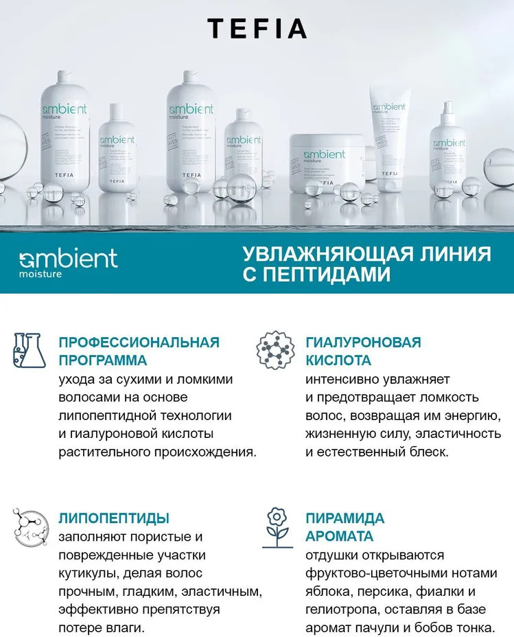 💳 Оплатить за товар можно при получении 🇰🇿 Есть бесплатная доставка по Казахстану от 1 дня 🎁 Копите бонусы с каждой покупки Серия: Ambient Moisture Несмываемый экспресс-уход для сухих, ломких и пористых волос. Мгновенно увлажняет волосы, облегчает расчесывание и укладку, усиливает блеск и гладкость волос. Содержит инновационный липопептид для восстановления и укрепления поврежденных участков волос. Anti-Pollution Фактор и УФ-фильтр защищают волосы от негативного воздействия окружающей среды. Уровень pH — 4,5 (допускается отклонение фактического значения pH в пределах 0,5 единицы). |