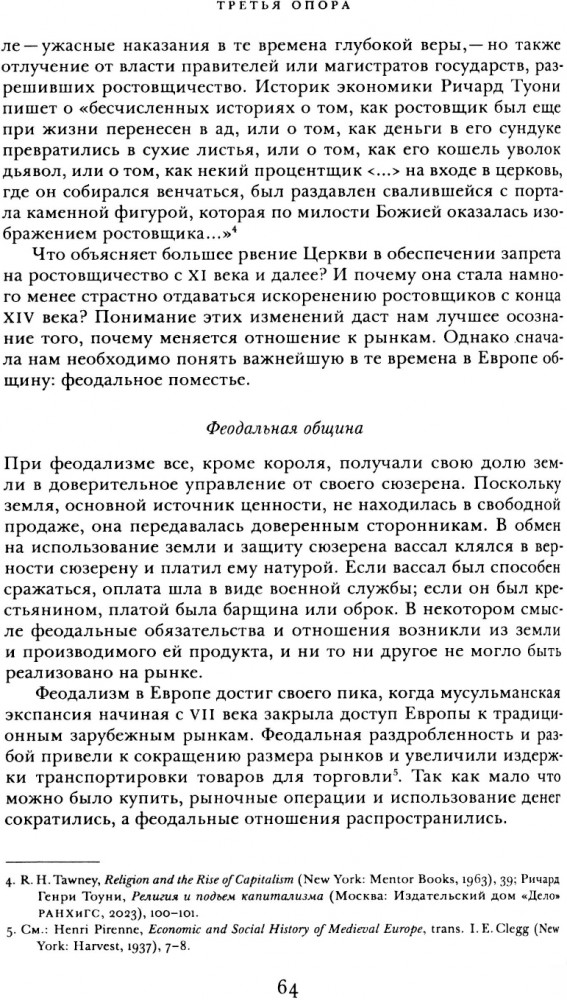 «Третья опора» в названии книги — это сообщество, в котором мы живем. Экономисты часто считают, что они должны заниматься только отношениями между рынками и государством, а социальные вопросы в область их интересов не входят. Это не просто близоруко, утверждает Раджан, это опасно. Вся экономика на самом деле является социоэкономикой — все рынки вплетены в паутину человеческих отношений, ценностей и норм. Раджан показывает, как на протяжении истории человечества технологические фазовые сдвиги вырывали рынок из этих старых сетей и приводили к ожесточенным столкновениям и к тому, что мы сейчас называем популизмом. В конце концов все приходит к новому равновесию, но оно может быть крайне непривлекательным.