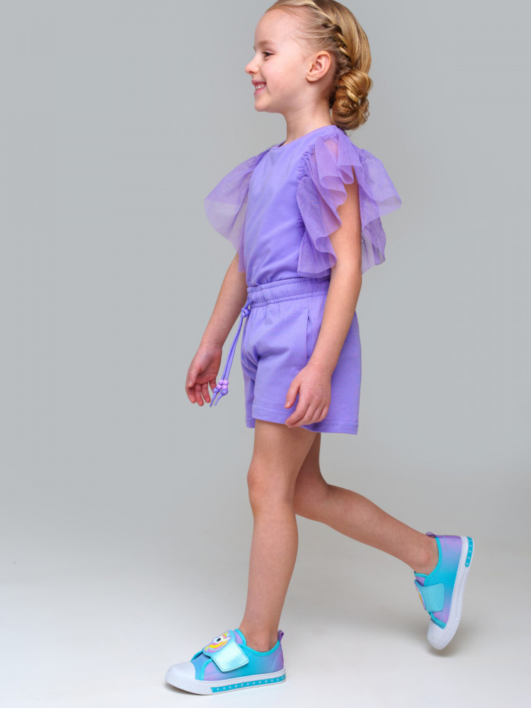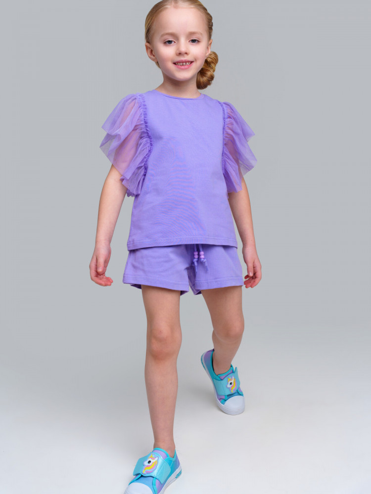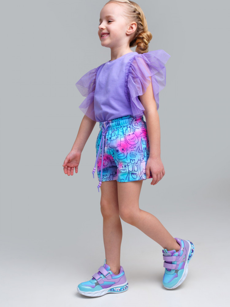 Набор детских шорт для девочки. Комплект шорт из качественного и приятного на ощупь трикотажа джерси. Шорты на резинке со шнурком. Боковые карманы. Высокое содержание хлопка 95%. Благодаря наличию эластана в составе ткани изделие держит форму и меньше мнется. Модель выполнена из качественного и приятного на ощупь трикотажа.