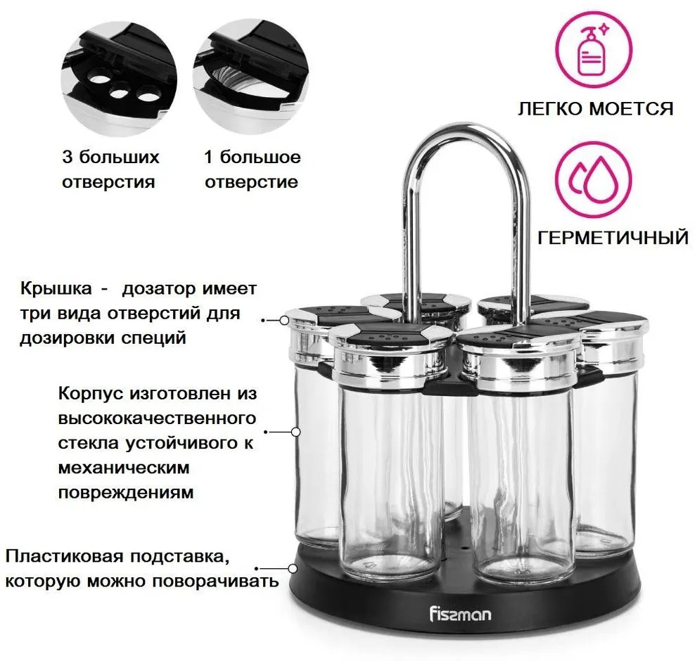 💳 Оплатить за товар можно при получении 🇰🇿 Есть бесплатная доставка по Казахстану 🎁 Копите бонусы с каждой покупки Элегантный набор для специй изготовлен из стекла, которое не впитывает запахи и прекрасно сохраняет свежесть и вкусовые качества продуктов. Удобный и стильный набор для приправ станет прекрасным дополнением на Вашей кухне. |