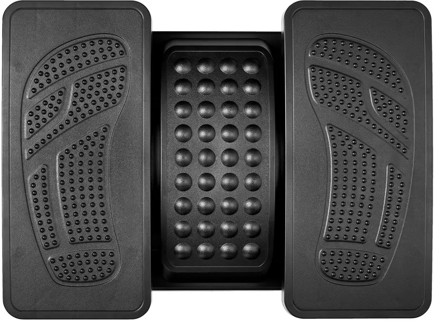 Конструкция с двумя автономными педалями позволяет настроить угол наклона от 0 до 25 градусов для каждой ноги, что дает возможность разместиться с максимальным удобством. Педали движутся плавно и без усилий, обеспечивая мягкую поддержку ног на весь день. В комплекте предусмотрены 4 дополнительные вставки для увеличения высоты подставки, благодаря чему можно отрегулировать и положение коленей по своему усмотрению. Каждая педаль оснащена маленькими зубцами для акупунктурной терапии. Стимуляция определенных точек на ступне способствует облегчению боли, снятию напряжения в мышцах ног и других частях тела.
