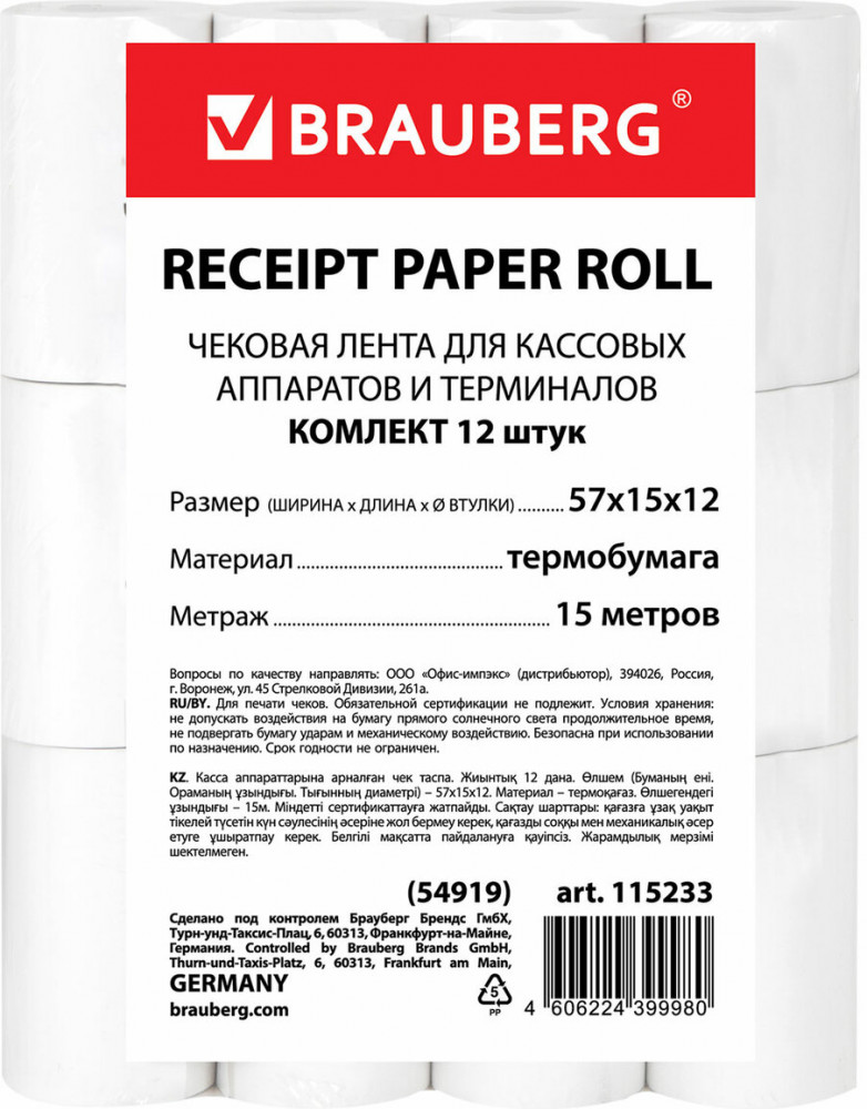 💳 Оплатить за товар можно при получении 🇰🇿 Есть бесплатная доставка по Казахстану от 1 дня 🎁 Копите бонусы с каждой покупки Чековая лента Brauberg применяется для кассовых аппаратов, платежных терминалов самообслуживания, банкоматов и т.п. Изготовлена на современном оборудовании, обеспечивающем ровную намотку и отсутствие бумажной пыли. |