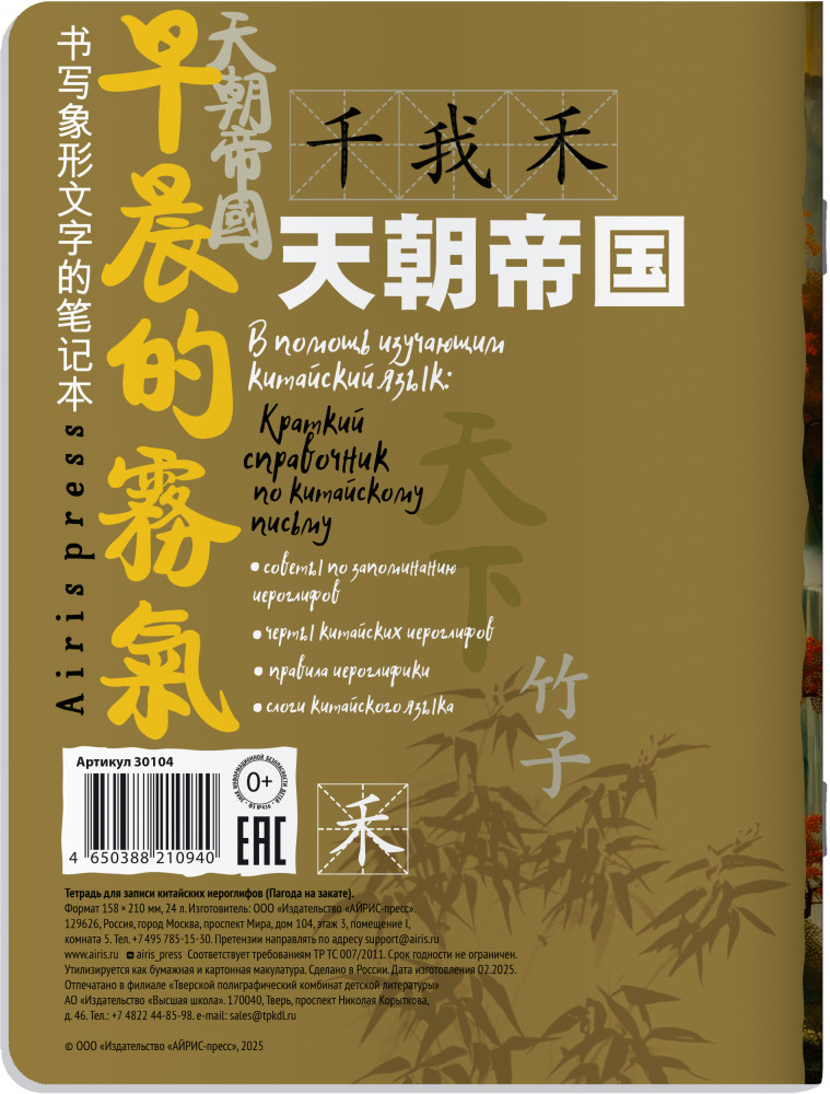 Тетрадь для записи китайских иероглифов «Пагода на закате»-20% +6