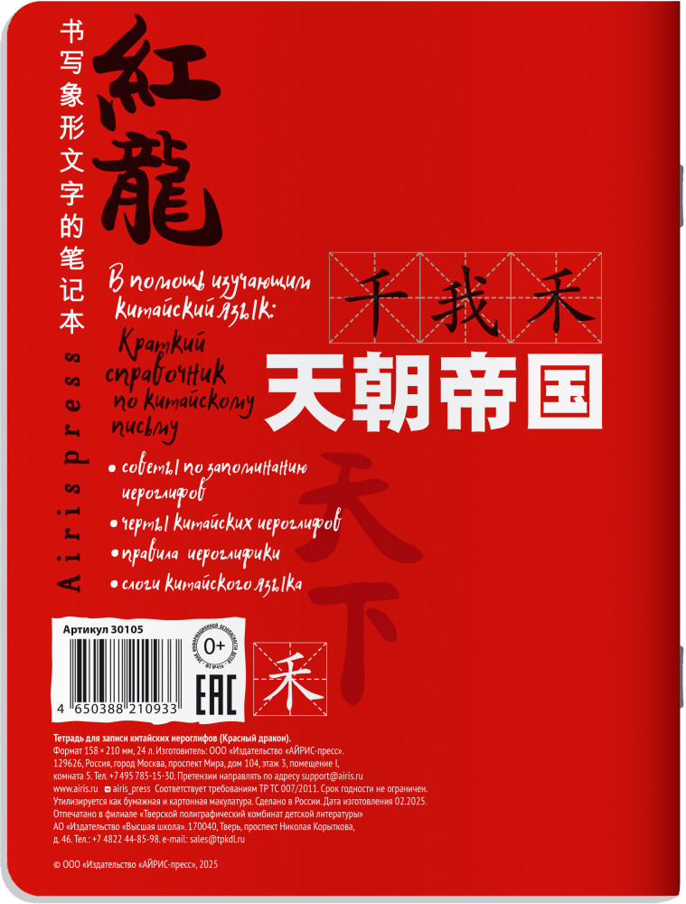 Тетрадь для записи китайских иероглифов «Красный дракон»-20%