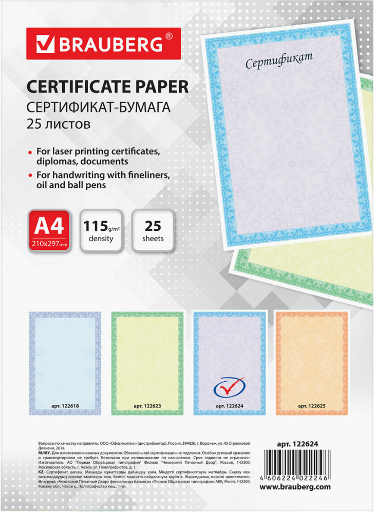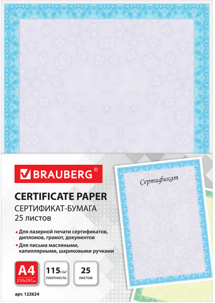 💳 Оплатить за товар можно при получении 🇰🇿 Есть бесплатная доставка по Казахстану от 1 дня 🎁 Копите бонусы с каждой покупки Сертификат-бумага для лазерной печати Brauberg предназначена для изготовления сертификатов, грамот, дипломов, памятных и других важных документов. Идеальна для письма масляными, капиллярными и шариковыми ручками. |