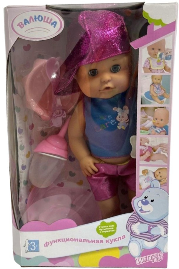 💳 Оплатить за товар можно при получении 🇰🇿 Есть бесплатная доставка по Казахстану от 1 дня 🎁 Копите бонусы с каждой покупки Функциональная кукла Валюша — замечательная игрушка для сюжетно-ролевых игр. Куклу можно поить водой и усаживать на горшок во время питья, что делает игру максимально реалистичной. В комплект входят горшок, соска, ложка и тарелка. С Валюшей ребенок научится заботе, вниманию и ответственности, разовьет воображение и моторику. Отличная кукла для веселых и познавательных игр. |