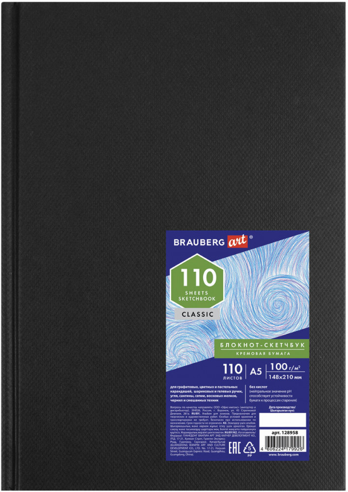 Серия: Art Classic Скетчбук для эскизов и графики. Внутренний блок — специальная художественная бумага кремового оттенка с легкой зернистой фактурой. Подходит для работы с широким спектром графических материалов (уголь, соусы, карандаши и прочие). |