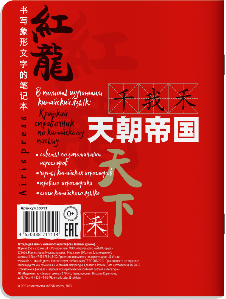 Тетрадь для записи китайских иероглифов «Зелёный дракон»-20%