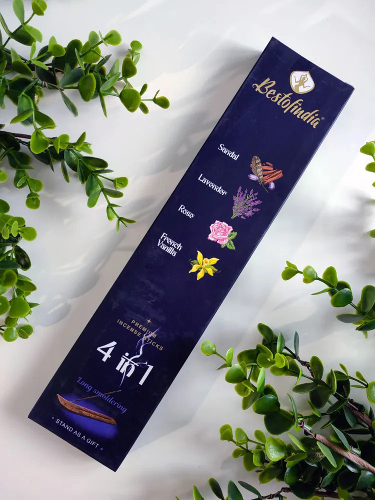 Bestofindia Палочки ароматические с подставкой Premium Incense Sticks 4 в 1 «Sandal, Lavender, Rose, French Vanilla»