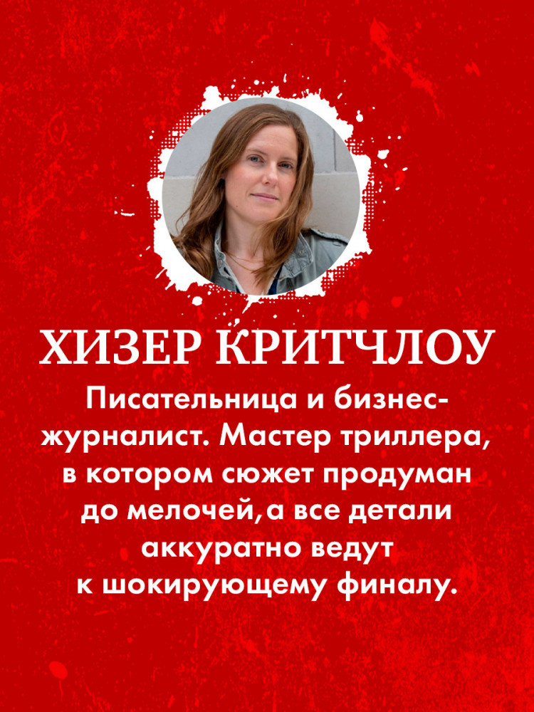 Хизер Критчлоу — писательница и бизнес-журналист. Ее дебютный роман «Убитые девушки» вошел в шорт-лист престижной британской литературной премии и сразу же завоевал популярность у читателей. Критчлоу можно назвать настоящим мастером триллера, в котором сюжет продуман до мелочей, а все детали аккуратно ведут к шокирующему финалу.