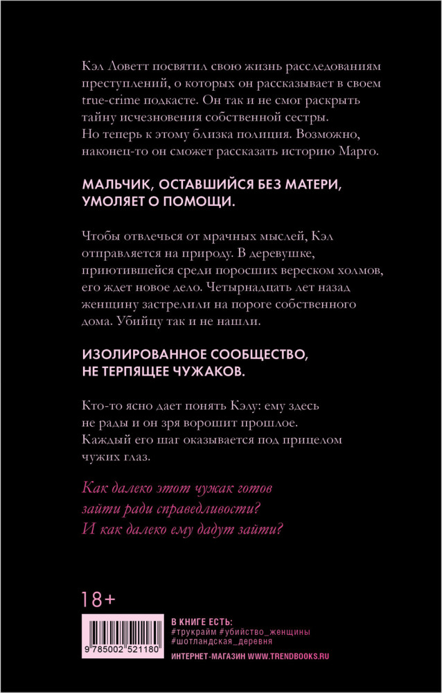 Серия: #trendbooks thriller Расследование нераскрытого преступления в маленькой шотландской деревушке... Атмосферный триллер от автора романа «Убитые девушки», вторая книга про тру-крайм-подкастера Кэла Ловетта.