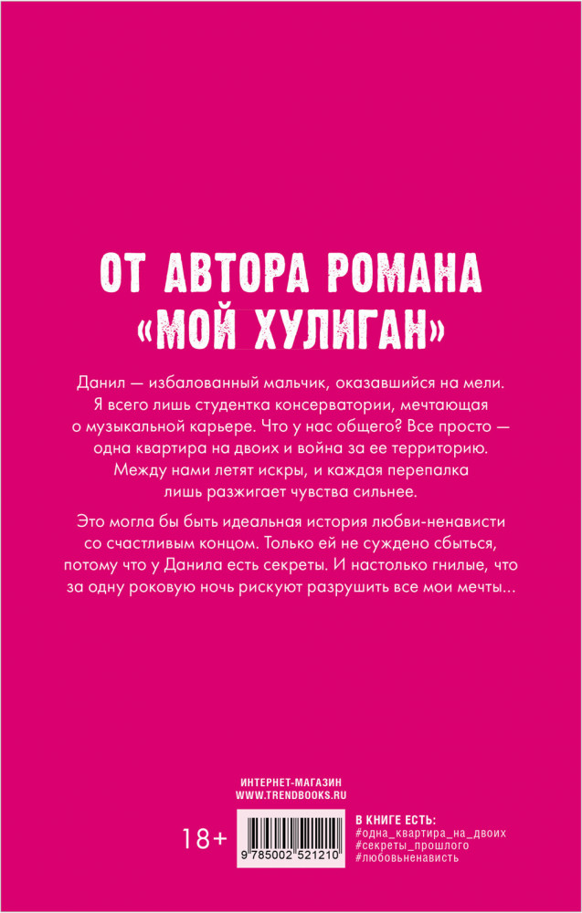 Его МальвинаВ данный момент этот товар отсутствует в продаже. Возможно, у нас найдется аналогичный или похожий товар здесь. Серия: #Trendbooks_love Головокружительный роман от автора бестселлеров «Мой хулиган» и «Никому о нас не говори» Алены Черничной. История любви, выбора и борьбы с внутренними монстрами. |
