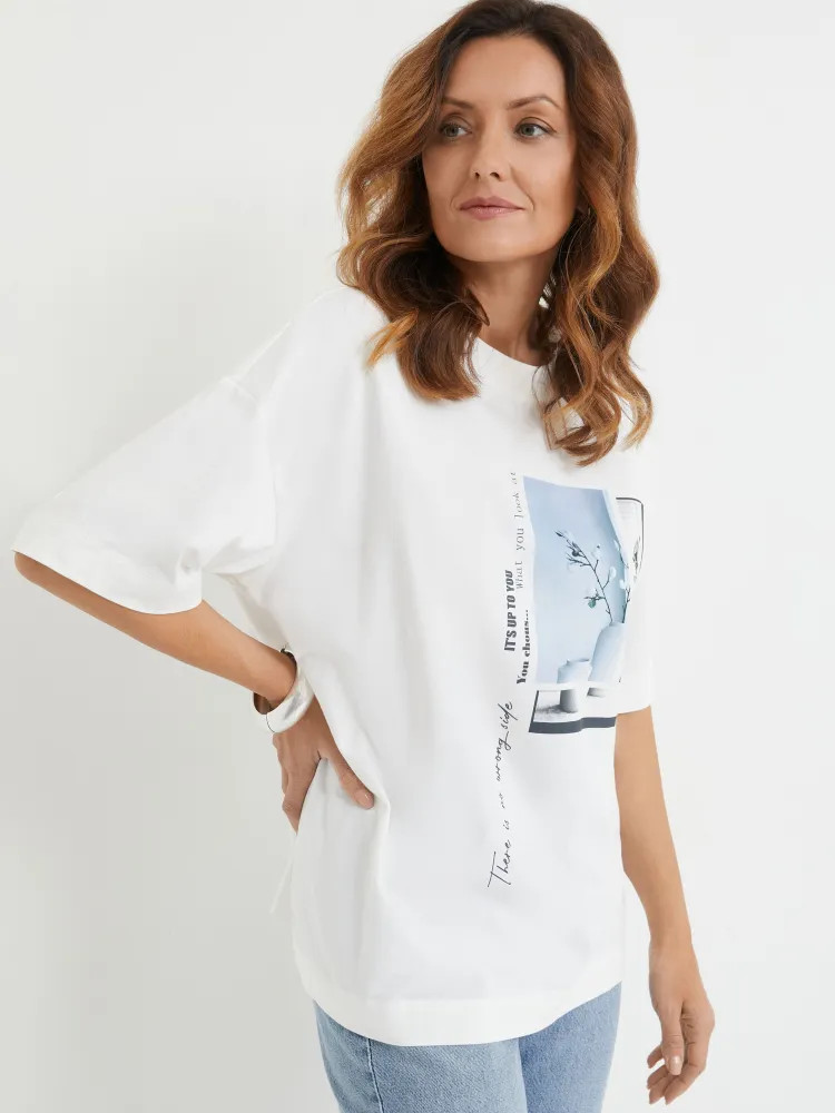 Дизайн этой женской футболки лаконичен, что позволяет ей быть как классическим вариантом для ежедневной носки, так и интересным элементом для создания более экстравагантных образов. Легкость в уходе и высокое качество материалов гарантируют долговечность изделия, позволяя вам наслаждаться его ноской в течение долгого времени. Не упустите возможность пополнить свой гардероб этой стильной футболкой, которая не только подчеркнет ваш стиль, но и подарит комфорт в течение всего дня.