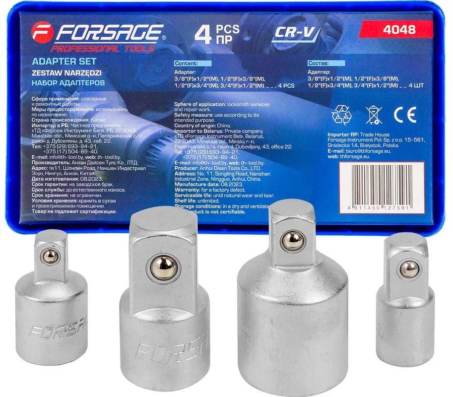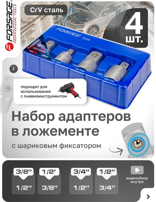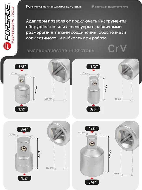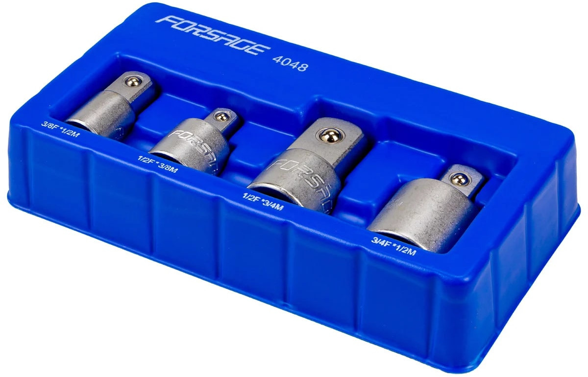 Набор из 4 переходных адаптеров обеспечит вам комфортную работу с торцевыми головками, даже в случае отсутствия подходящей трещотки, воротка или пневмогайковерта. Адаптеры изготовлены из хром-ванадиенового сплава (CR-V), гарантируя их долговечность и высокую степень износостойкости. Благодаря разнообразию размеров, вы сможете легко переключаться между различными инструментами и механизмами, не тратя время на поиски соответствующего оборудования. Это особенно полезно в автомобильных, строительных и промышленных отраслях, где требуется быстрая и эффективная работа.