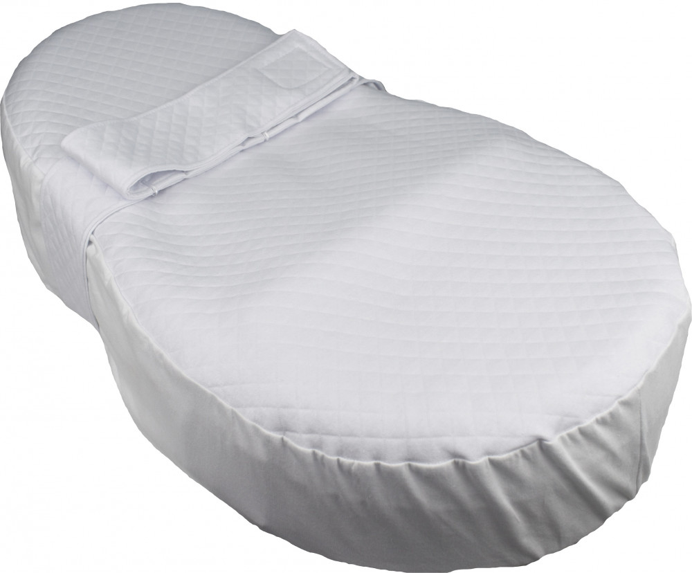 Комплектация: основание кокона из пенополиуретана, непромокаемый чехол на молнии, валик для ножек, регулируемый ремешок для фиксации, чехол из мягкого 100% хлопка. |