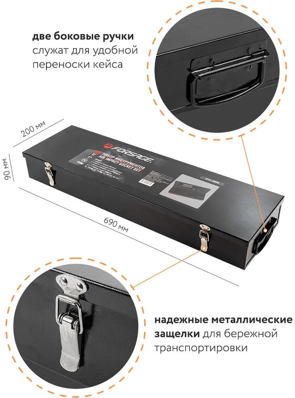 Forsage Набор инструментов ударныхВ данный момент этот товар отсутствует в продаже. Возможно, у нас найдется аналогичный или похожий товар здесь. Набор инструментов ударных с посадочным квадратом 1″. Набор включает в себя ударные головки, трещотку, воротки и удлинители. Они изготовлены из высококачественной хромомолибденовой стали (Cr-MO), что обеспечивает им прочность и долговечность. Головки ударные предназначены для зажима/разжима деталей и другой работы внутри механизмов. Они могут использоваться в автомобильном ремонте, строительстве, промышленных процессах и других областях. Способны выдерживать значительные нагрузки и удары, что позволяет работать с более тугими крепежными элементами и устойчивы к повреждениям. Трещотка и воротки используются вместе с головками для зажима/разжима внутри различных механизмов. Удлинители применяются при работе в труднодоступных местах. Незаменимый инструмент в арсенале любого автомеханика или промышленного работника, который работает с крепежными элементами. Они обеспечивают быстрое и эффективное решение задач, связанных с крепежом. |