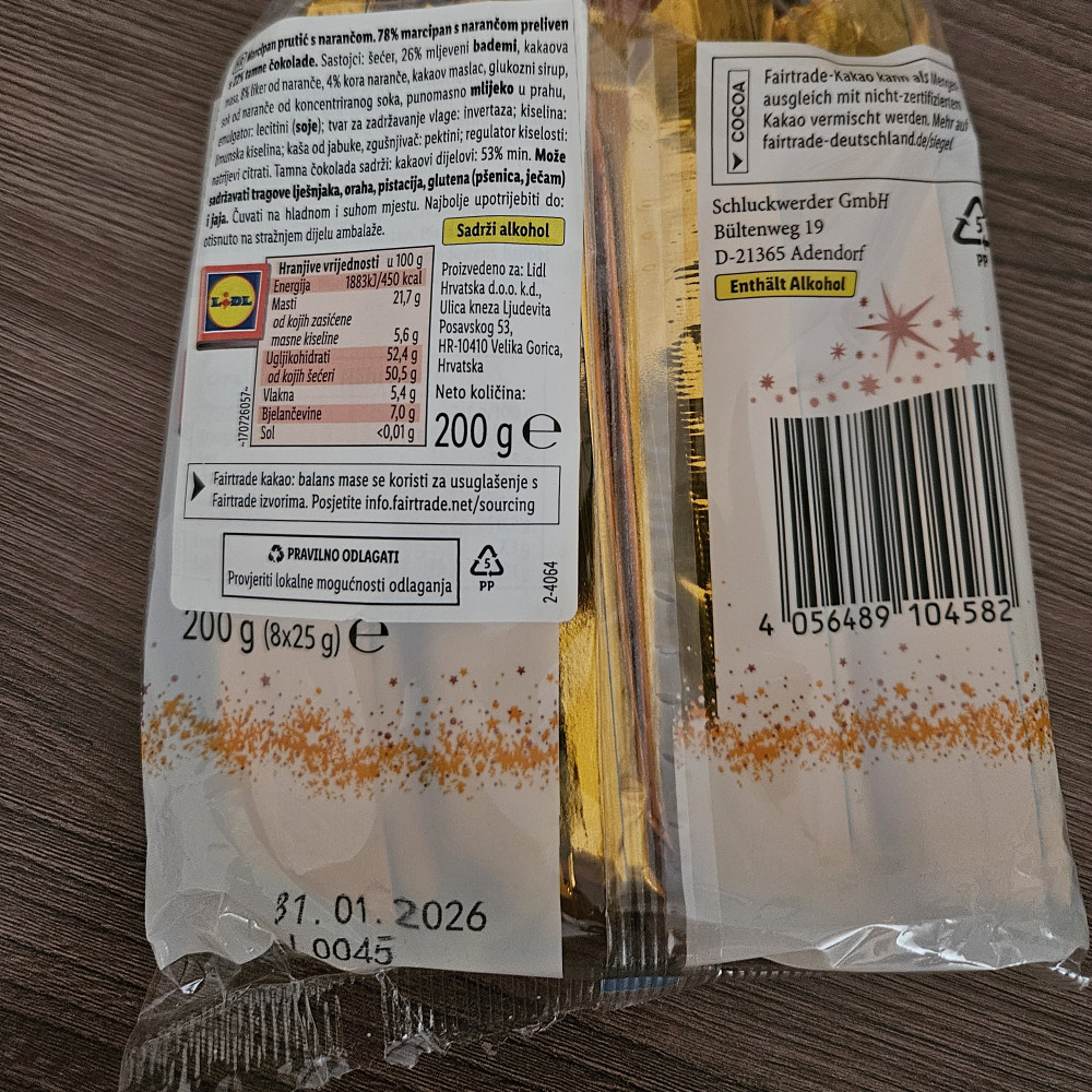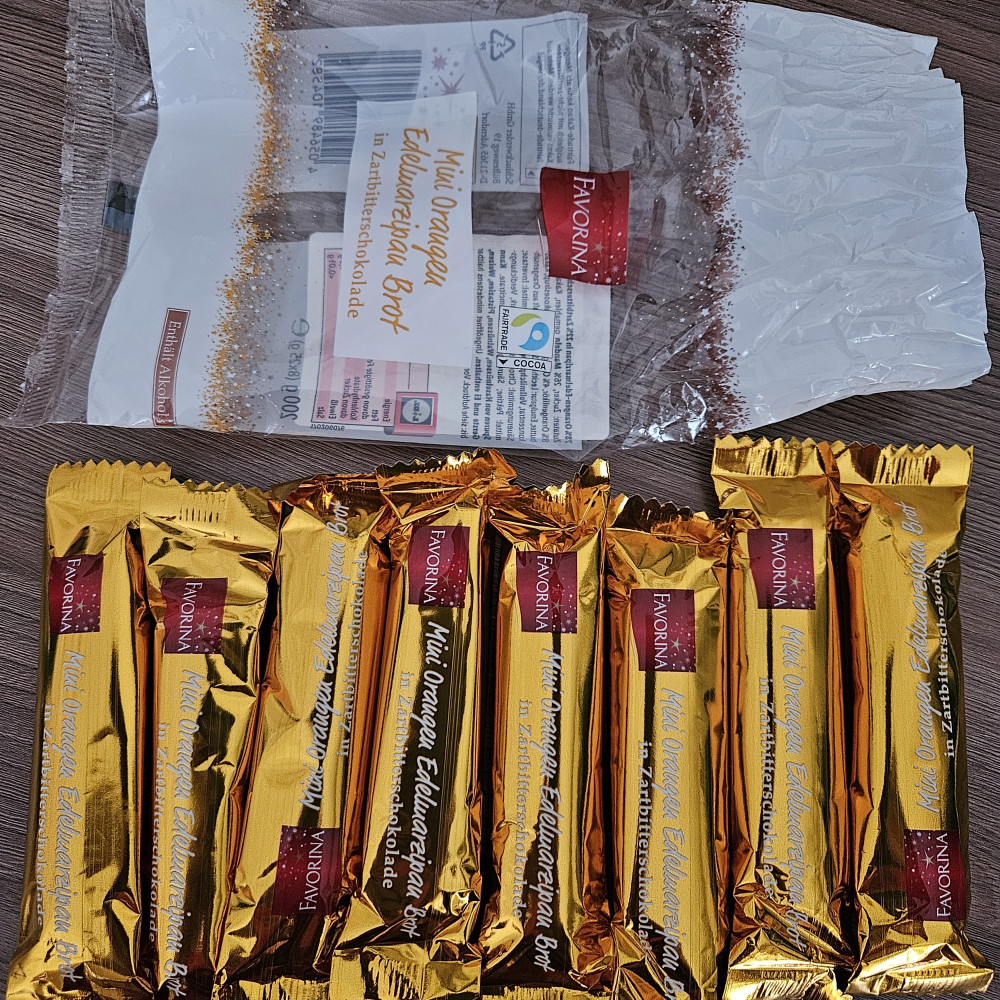 Favorina Марципан с печеньем в темном шоколаде «Mini Orangen Edelmarzipan Brot»