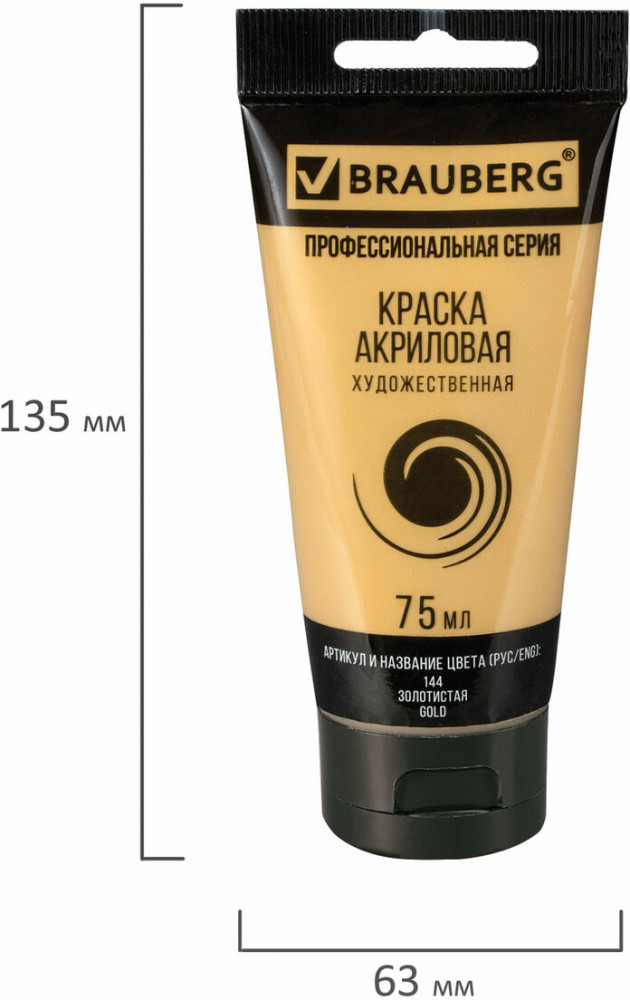 Brauberg Краска акриловая, 144 золотой