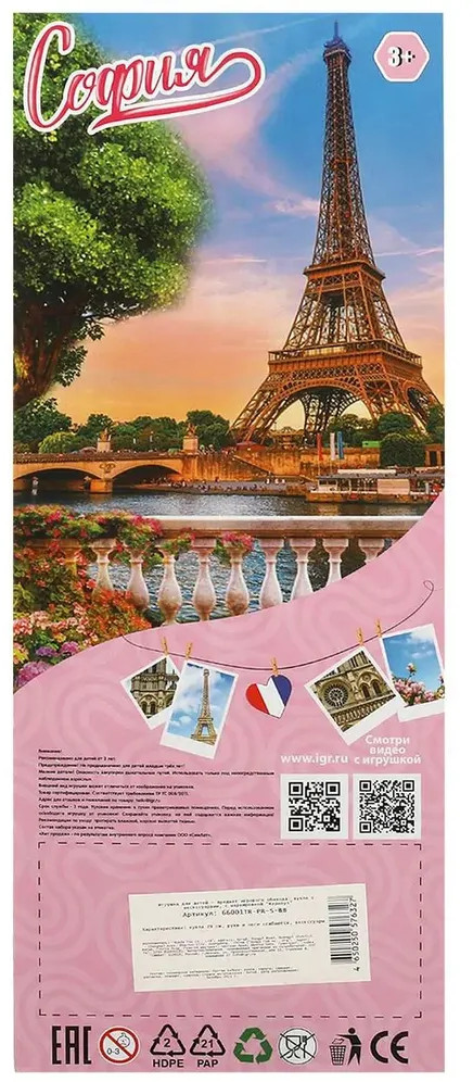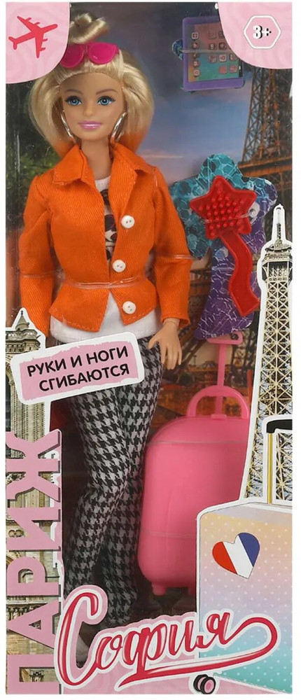 💳 Оплатить за товар можно при получении 🇰🇿 Есть бесплатная доставка по Казахстану от 1 дня 🎁 Копите бонусы с каждой покупки Кукла «София. Путешествие в Париж» ТМ «Карапуз» станет прекрасным подарком для вашей принцессы. Модница София одета в оранжевый пиджак, белую кофту и брюки с принтом «гусиная лапка», образ дополняют крупные серьги-кольца и розовые очки. Одежду и аксессуары легко снять и надеть. У Софии длинные волосы, которые хозяйка куклы сможет заплетать в разные причёски. Наличие дополнительных аксессуаров в наборе сделает игры с куклой более разнообразными и интересными. |