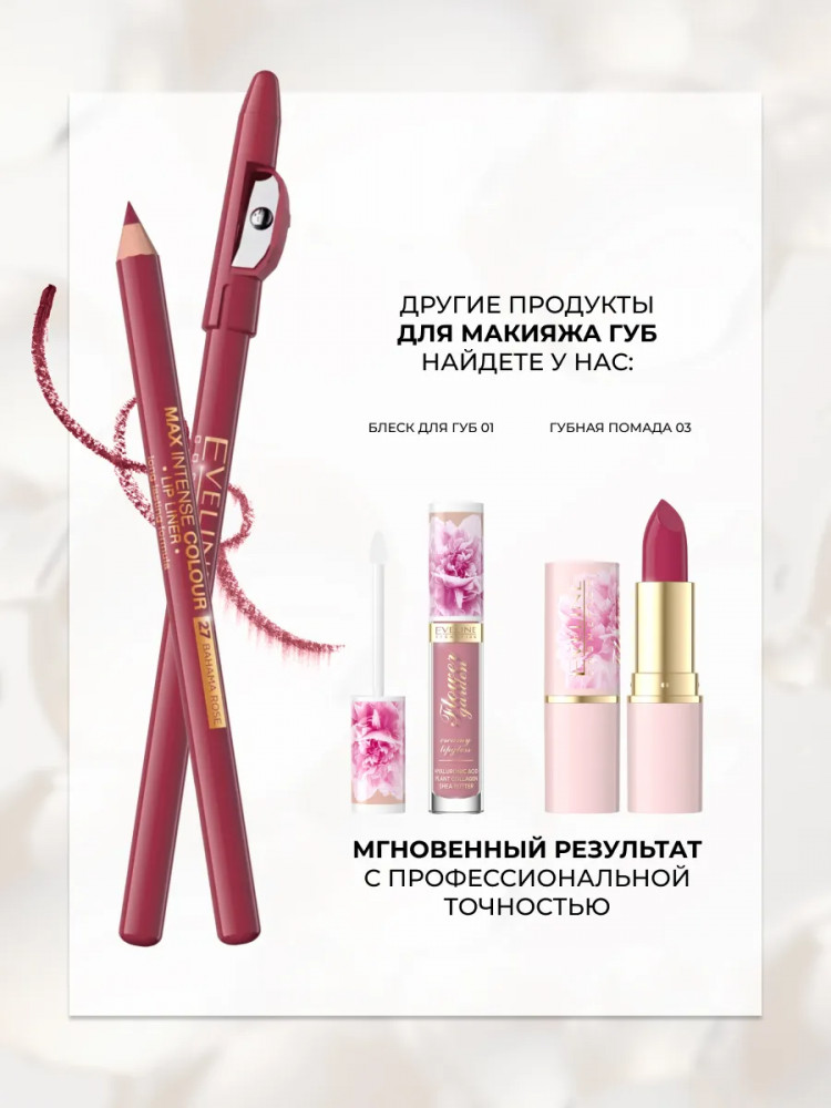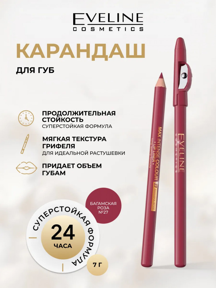 Eveline Cosmetics Карандаш для губ контурный, тон 27 Bahama Rose