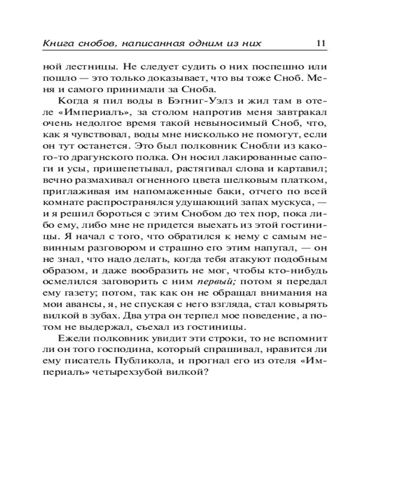 💳 Оплатить за товар можно при получении 🇰🇿 Есть бесплатная доставка по Казахстану от 1 дня 🎁 Копите бонусы с каждой покупки Серия: Зарубежная классика Еще до «Ярмарки тщеславия» Теккерей произвел фурор в обществе серией колких, остроумных статей, высмеивающих самые разные виды снобов, которых можно встретить в викторианском обществе. Студенты и военные, купцы и священники, судьи и политики — автор не пощадил никого. Изначально опубликованные в журнале «Панч», статьи были собраны под одной обложкой под названием «Книга снобов, написанная одним из них». |
