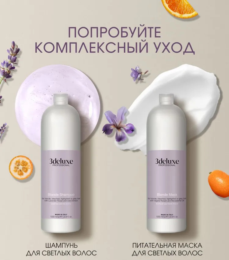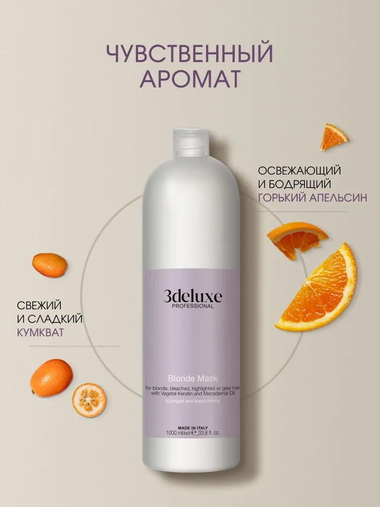 3Deluxe professional Маска для сохранения цвета светлых, осветленных, мелированных и седых волос с растительным кератином и маслом макадамии «Blonde Mask»
