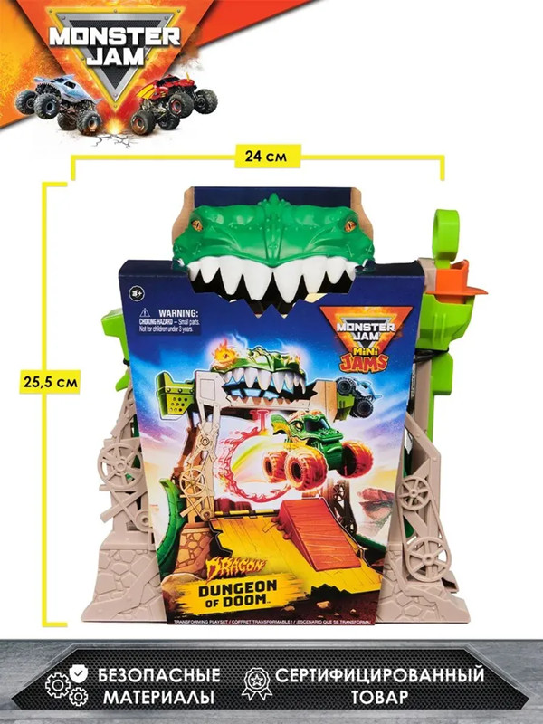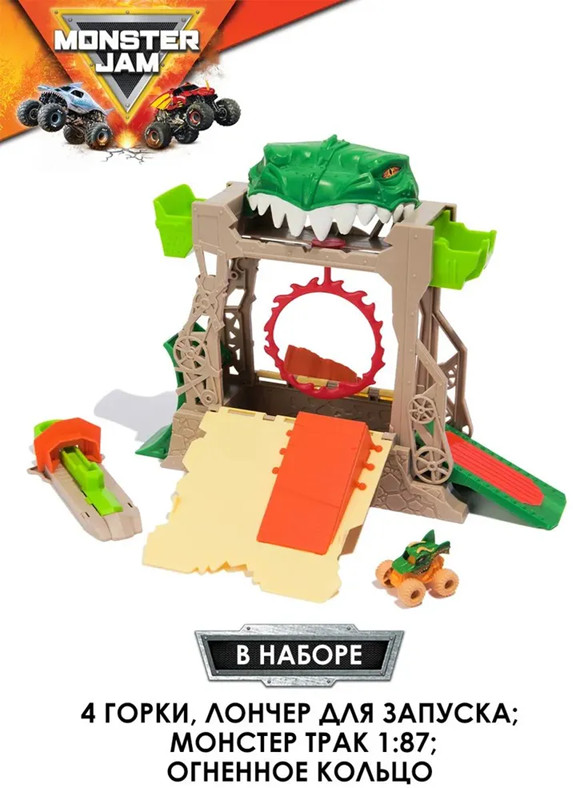 Присоединяйся к эпичным и безумным состязаниям монстр-траков Monster Jam! Monster Jam — это захватывающее спортивное мероприятие с участием мощных машин-монстров. Шоу демонстрирует невероятную силу и ловкость этих машин, способных разрушать автомобили, парить в воздухе и выполнять сложные трюки. Новые виражи уже ждут тебя! Запускай машины через невероятную пасть дракона! Горка настолько компактная и преобразуется в кейс, что ее можно брать с собой куда угодно! Трак Драгоноид мчит быстрее ветра и преодолевает любые препятствия на пути! |