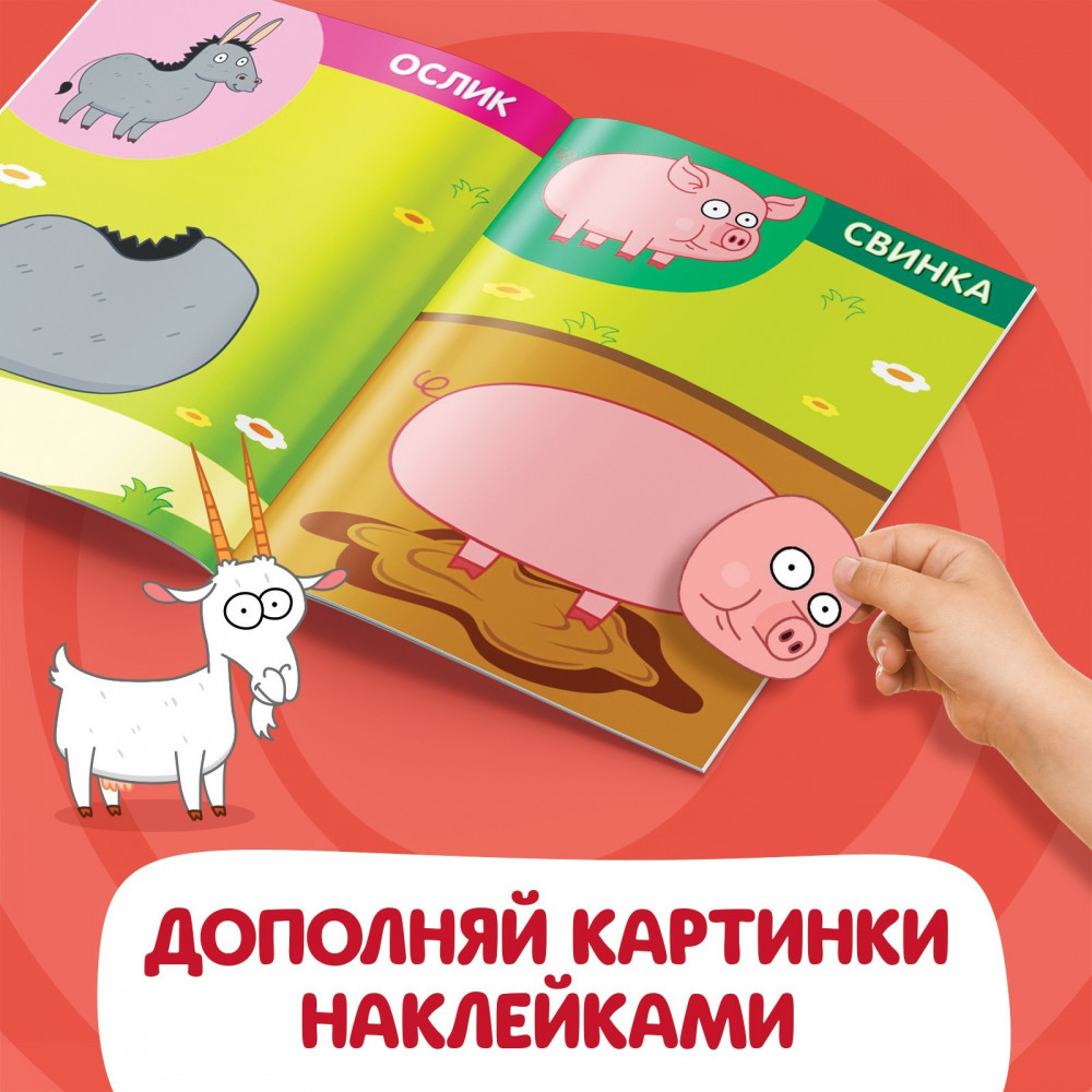 Книжка «Аппликации наклейками. Животные фермы»+12