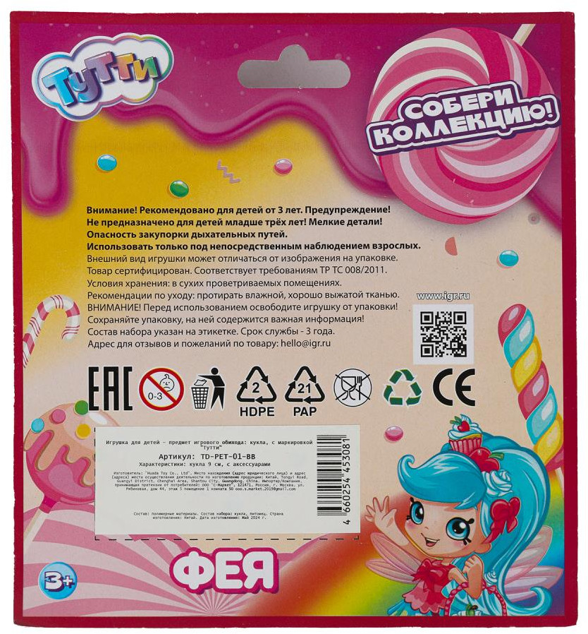 Тутти Кукла «Фея»В данный момент этот товар отсутствует в продаже. Возможно, у нас найдется аналогичный или похожий товар здесь. Кукла «Фея» ТМ «Тутти» станет прекрасным подарком для девочки. Очаровательная куколка в образе феи с розовыми волосами и сиреневыми крылышками непременно понравится вашей малышке. Она одета в милое платье, на ножках — красивые туфельки. Благодаря компактному размеру игрушку можно повсюду брать с собой. |