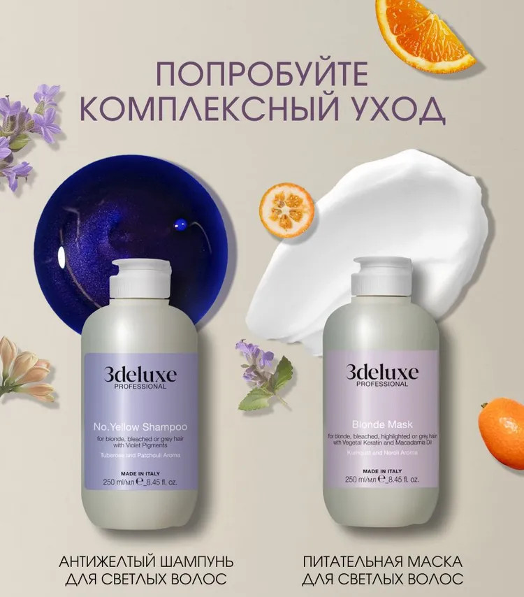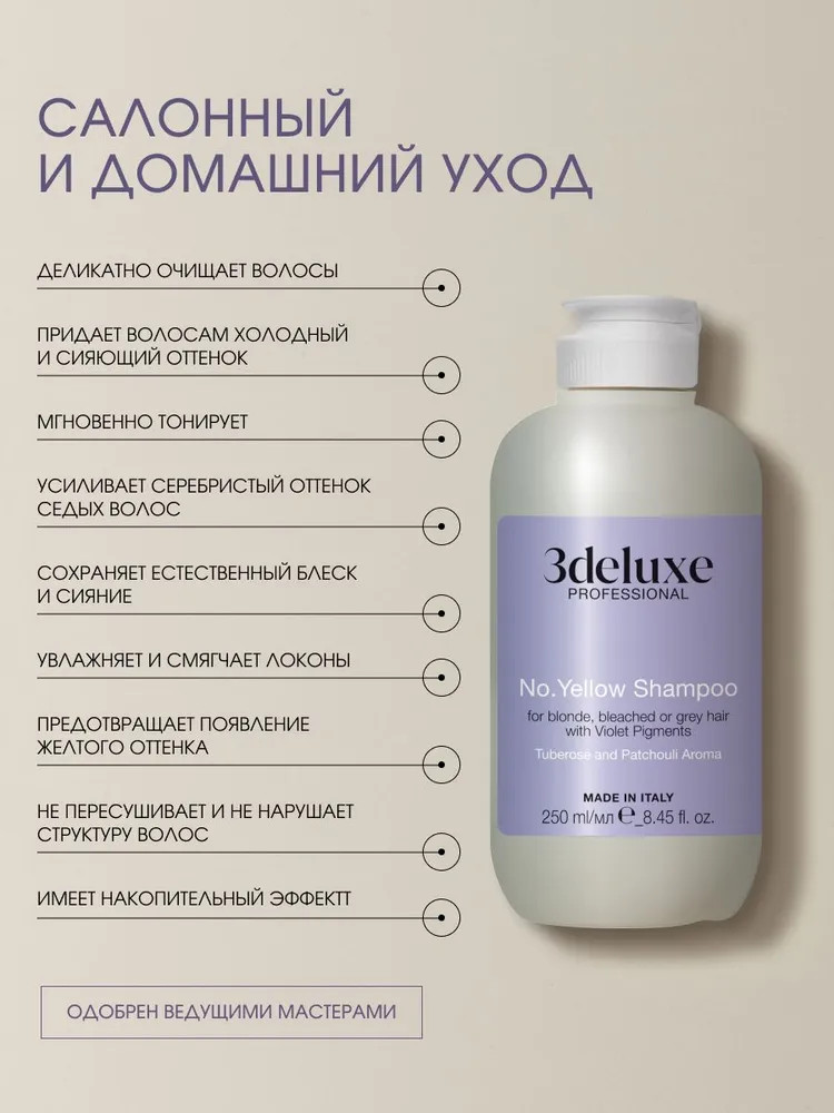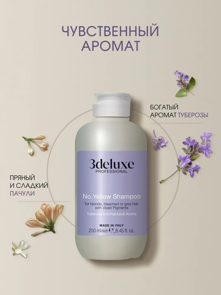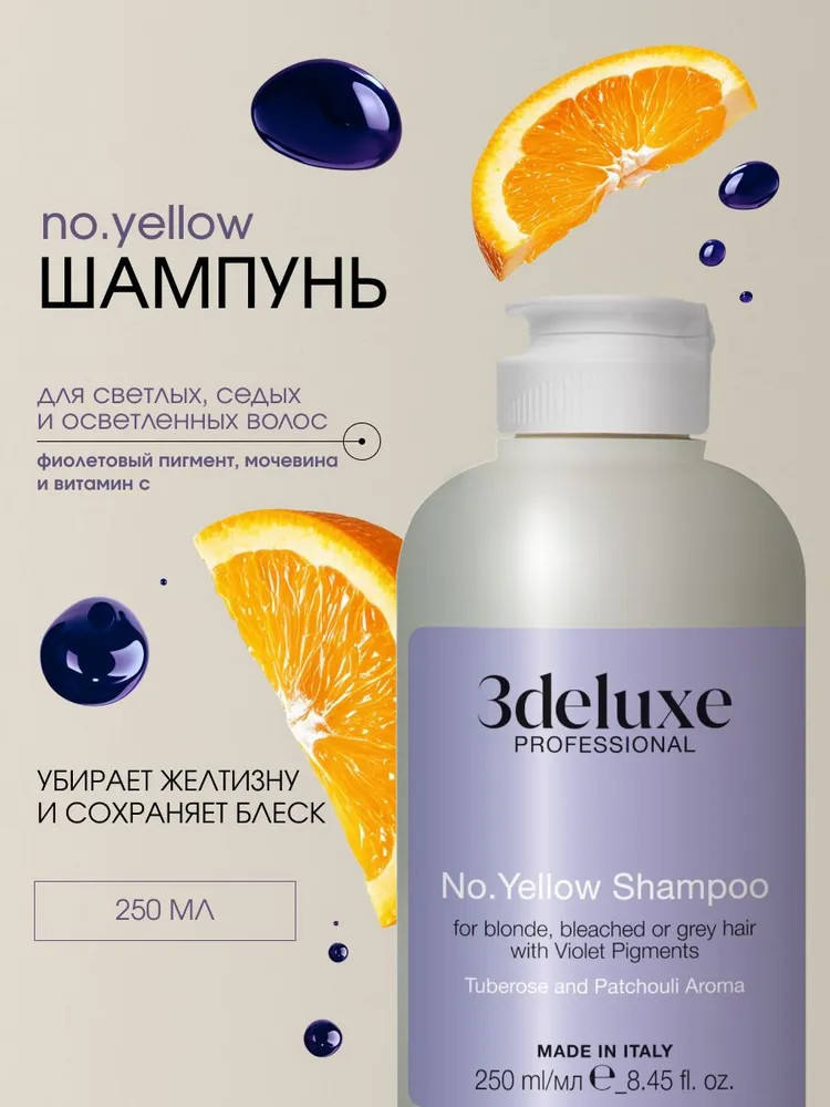 3Deluxe professional Антижелтый шампунь для светлых, осветленных, мелированных и седых волос «No.Yellow Shampoo»