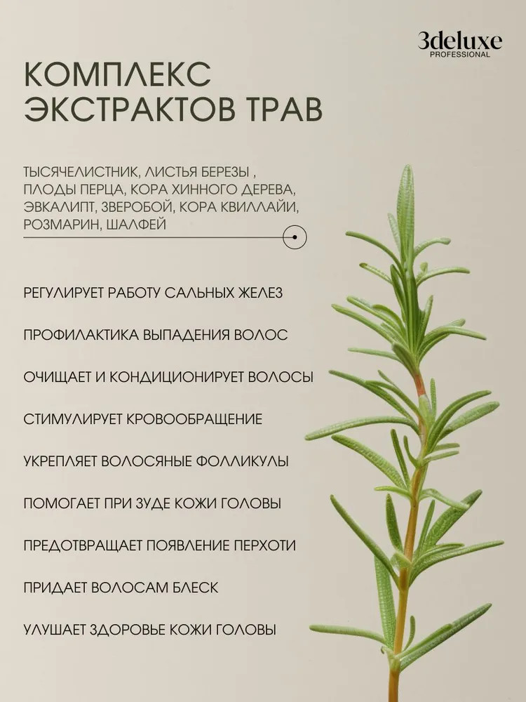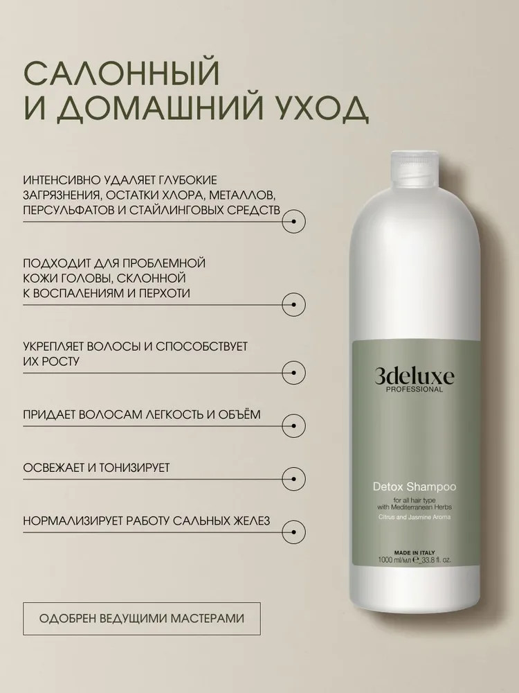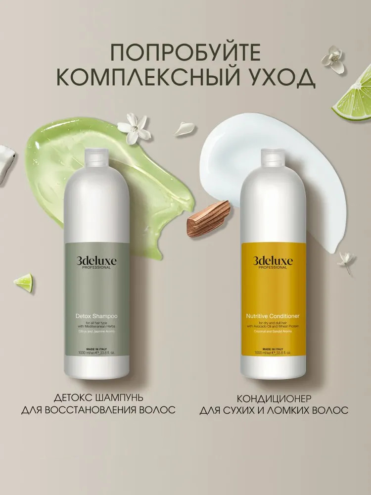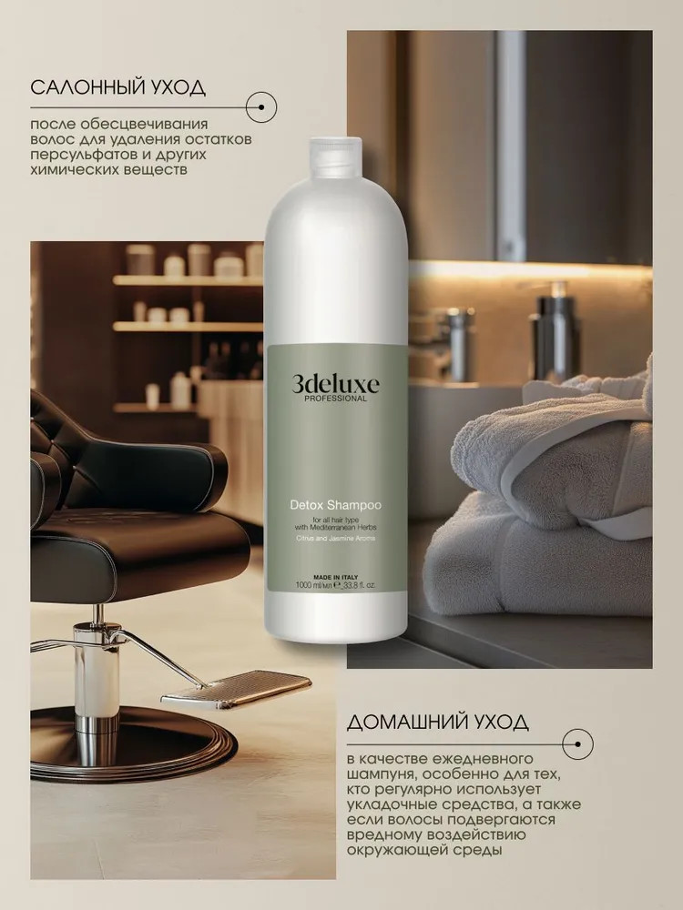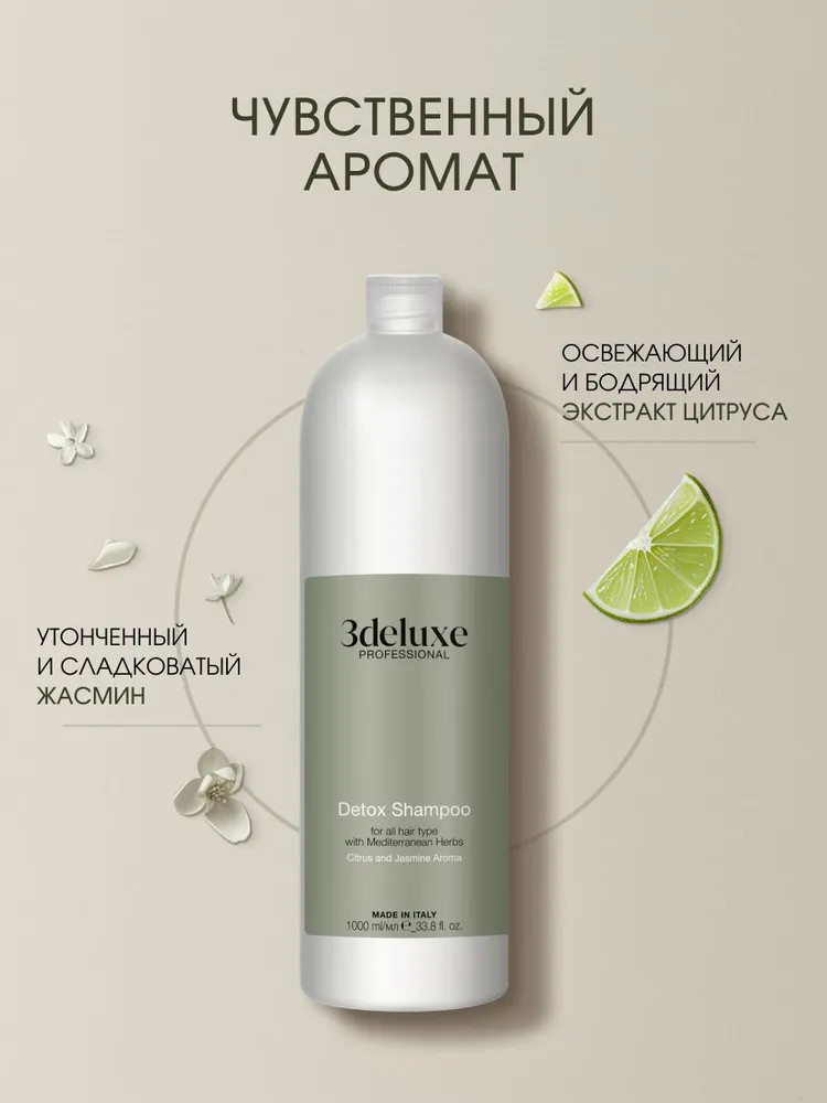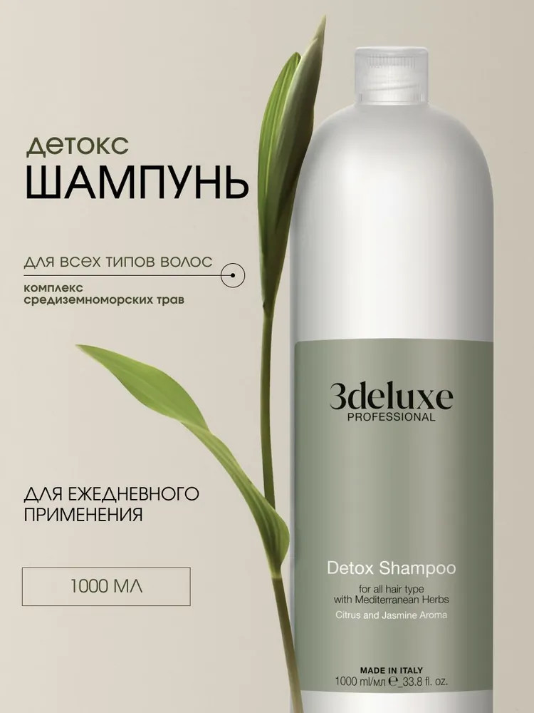 3Deluxe professional Шампунь-детокс восстанавливающий для всех типов волос со средиземноморскими травами «Detox Shampoo»