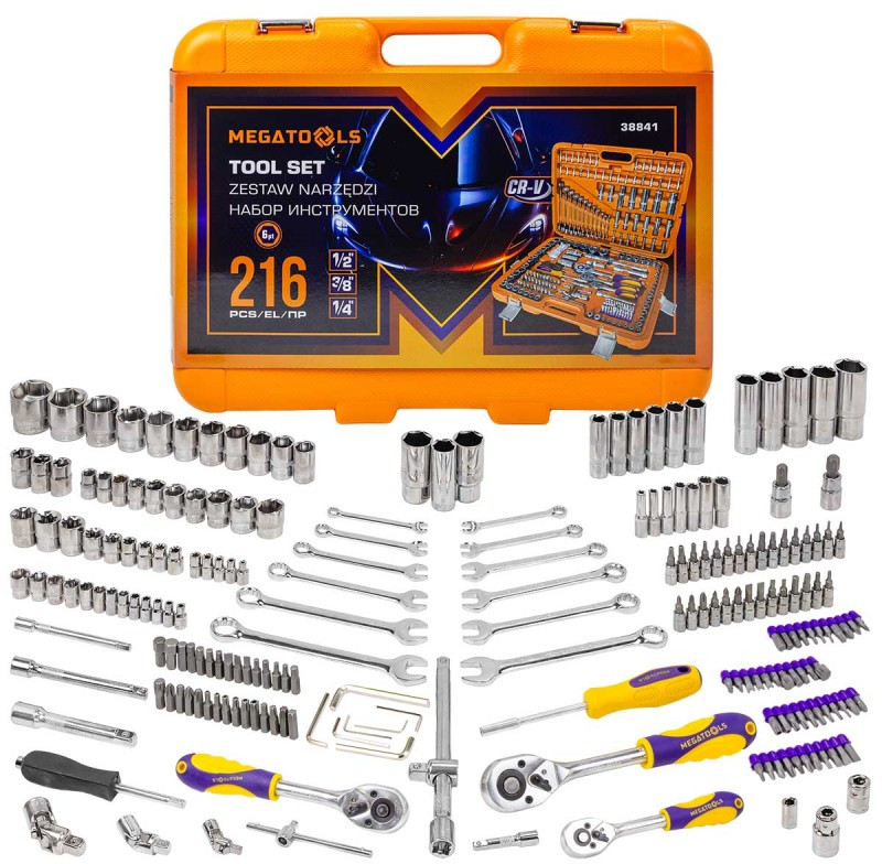 В данный момент этот товар отсутствует в продаже. Возможно, у нас найдется аналогичный или похожий товар здесь. Универсальный набор инструментов из 216 предметов — идеальное решение для проведения ремонтных работ в вашем автомобиле. Каждый инструмент изготовлен из высококачественной хромованадиевой стали, обеспечивая долговечность и надежность в использовании. Набор представлен широким ассортиментом инструментов и насадок с посадочными квадратами и отверстиями на 3/8″, 1/4"и 1/2″, что делает их совместимыми с большинством стандартных механизмов и оборудования.