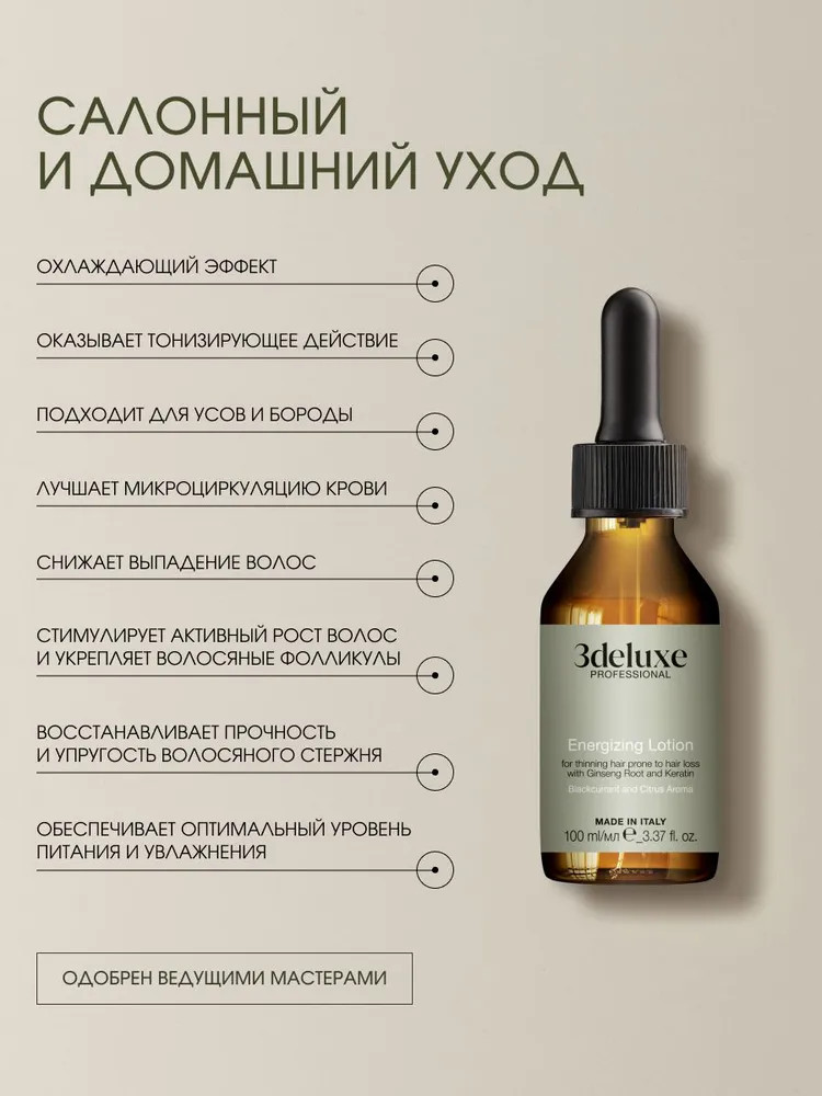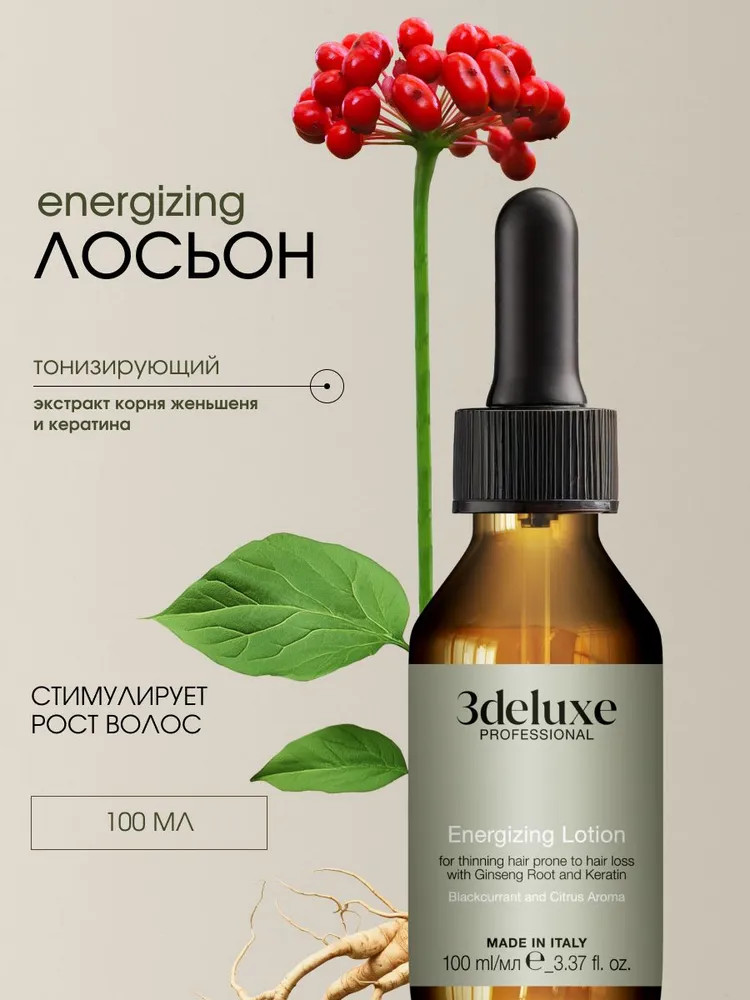 3Deluxe professional Лосьон для стимуляции роста волос энергетический с экстрактом корня женьшеня и кератином «Energizing Lotion»