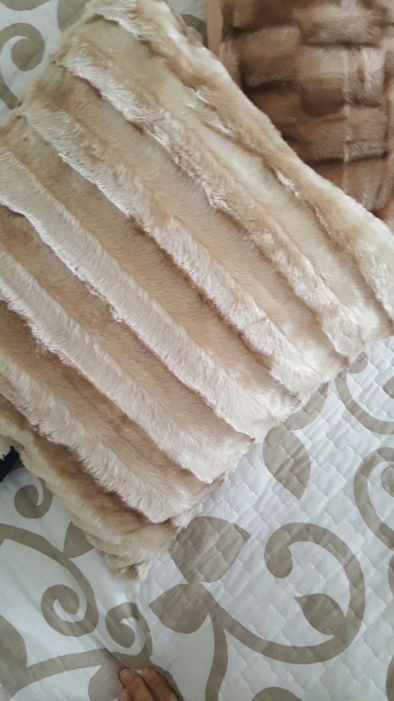 Купила наволочки зелёного и коричневого цвета. Цветовая гамма соответствует тому, что показали на образце. Мягкая, пушистая, сшита аккуратно. Замок вшит по центру наволочки. Ворс переливается. Обновлённые подушки отлично украсили интерьер спальни. Я осталась довольна. Спасибо магазину!!!