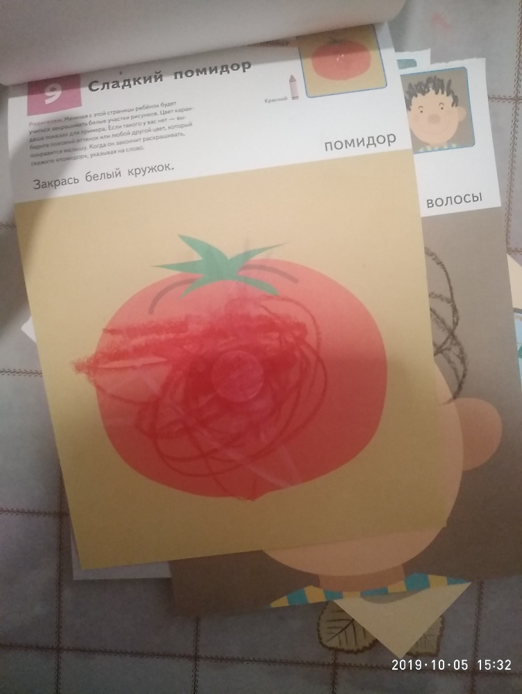 Нам 1,5 года - отлично подобраны материалы для рисования для этого возраста. Удобнее вырвать лист из тетради и делать задание.