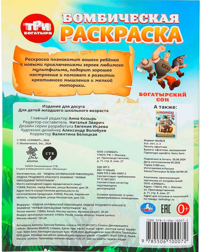 Бомбическая раскраска «Три богатыря. Богатырский сон» ТМ «УМка» — отличный подарок для юных художников: