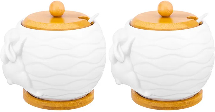 💳 Оплатить за товар можно при получении 🇰🇿 Есть бесплатная доставка по Казахстану от 1 дня 🎁 Копите бонусы с каждой покупки Серия: Кролик Набор 2 круглых сахарниц «Кролик» с ложкой на деревянной подставке предназначен для хранения самых разных продуктов. Размер каждой ёмкости — 12×12×12 см, объём — 620 мл. Сахарницы и ложки выполнены из белого фарфора, крышки и подставки — из натурального бамбука. Каждая сахарница украшена декоративной фигуркой зайчика. |