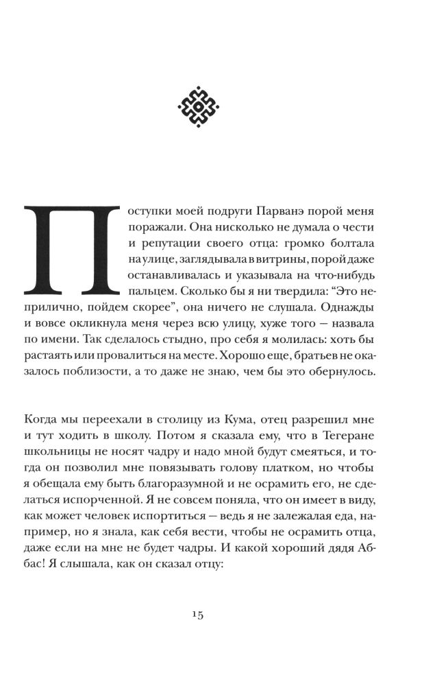Книга судьбыВ данный момент этот товар отсутствует в продаже. Возможно, у нас найдется аналогичный или похожий товар здесь. В “Книге судьбы” рассказывается о пяти десятилетиях жизни женщины и одновременно — об истории Ирана, с правления шаха Пехлеви до наших дней. Трудная и не всегда счастливая любовь, семья, работа, дети и при этом — постоянный страх за близких, которых преследуют или сажают за решетку, провозглашают героями, но могут и лишить жизни. А рядом — и верные друзья, и предатели, готовые отвернуться от тебя, если от тебя отвернется послушное власти большинство. |