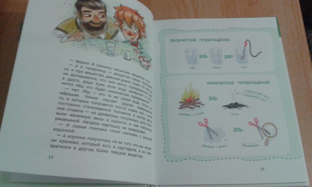 Моему сыну 10 лет, очень понравилась книга. Провели первый опыт с леденцом), это, конечно, вызвало большой интерес к изучению книги дальше). Мы всей семьей теперь знаем определение химической реакции). Знания, которые дает эта книга детям, очень нужные, советую к приобретению.