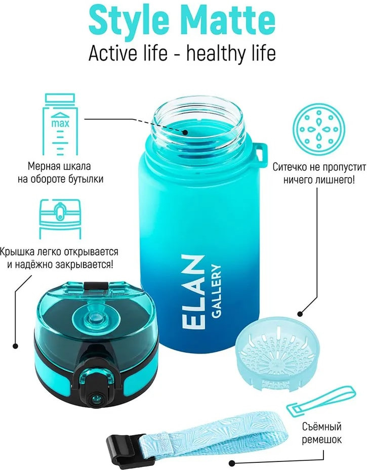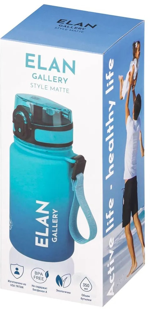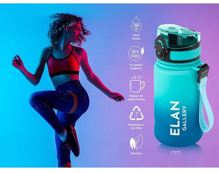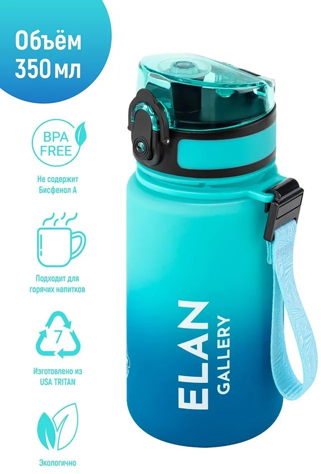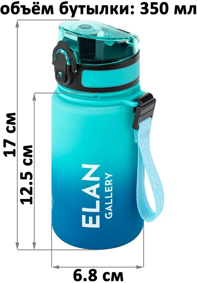 Бутылка для воды и другой жидкости 6,8×6,8×17 см Elan Gallery «Style Matte» со стильным градиентом имеет мерную шкалу с отметками по объему. Следите за водным балансом и ведите здоровый и активный образ жизни! Объём ёмкости — 350 мл, высота до крышки 12,5 см. Питьевая бутылочка выполнена из качественного пластика Usa Tritan. Материал не содержит бисфенол А, не выделяет вредных веществ, не имеет запаха. Подходит для холодных и горячих напитков: воды, сока или чая. На поверхности имеет углубления для пальцев, что обеспечивает удобный захват и предотвращает выскальзывание из рук даже во время бега. Бутыль для питья оснащена ситечком, поильником и клапаном (замком) на крышке. Дорожная бутылка имеет защиту от случайного открывания в сумке или рюкзаке. Ремешок для подвешивания съёмный: отсоедините черное крепление в виде крючка от бирюзового кольца. Стильный инвентарь станет незаменимой вещью на отдыхе, в путешествиях или спортзале. Бутылку на ремне с матовым покрытием удобно использовать во время поездок на велосипеде, в автомобиле или во время игры в футбол. Фляга для воды Style matte многоразовая, прочная и легкая, её удобно брать в дорогу или тренажёрный зал. Можно использовать как спорт бутылку для фитнеса и велоспорта, туризма, а также как детскую для школьника на занятиях физкультурой. Не впитывает запахи, не влияет на вкус напитков и легко отмывается. Красивая пластиковая бутылка поможет утолить жажду охлаждённым лимонадом на прогулке, тренировке или в школе. Не подходит для СВЧ, ПММ, стерилизатора. Станет приятным подарком мужчинам и женщинам. Такой сюрприз особенно придётся по вкусу спортсменам: футболисту или любительнице гимнастики и танцев. Станет прекрасным дополнением вашей коллекции походного и туристического инвентаря. В коллекции Elan Gallery представлено много посуды и товаров для дома на любой вкус. Спортивные аксессуары серии Style matte помогут следить за водным балансом и пить любимые напитки, где бы вы не находились.