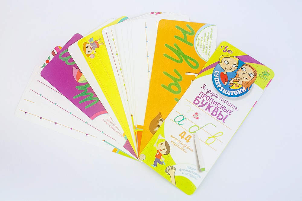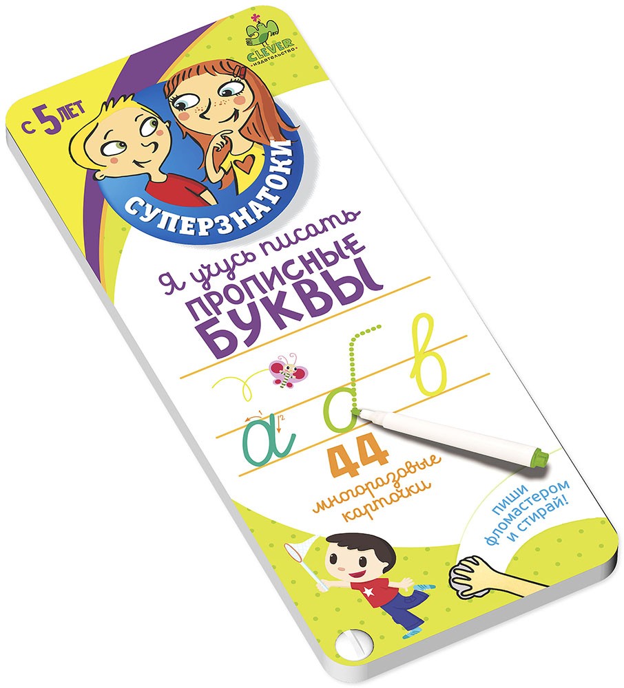 В данный момент этот товар отсутствует в продаже. Возможно, у нас найдется аналогичный или похожий товар здесь. Серия: Суперзнатоки. Я учусь писать Книжка-блокнот «Я учусь писать прописные буквы» серии «Суперзнатоки. Я учусь писать» ориентирована на обучение дошкольников письму. 44 яркие и красочные многоразовые карточки-прописи, на которых можно писать фломастером, а затем стирать, помогут ребенку изучить написание букв в игровой форме. Помимо обучения письму, детям предложены 32 маленькие игры с буквами (например, обведи животное, название которого начинается с буквы З) и 5 карточек с рельефными рисунками. Еще одно преимущество книжки - звёздочки в точках начала письма и направляющие стрелки, которые помогут малышу писать правильно.